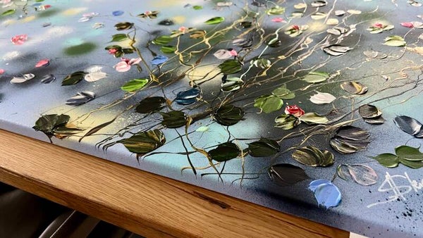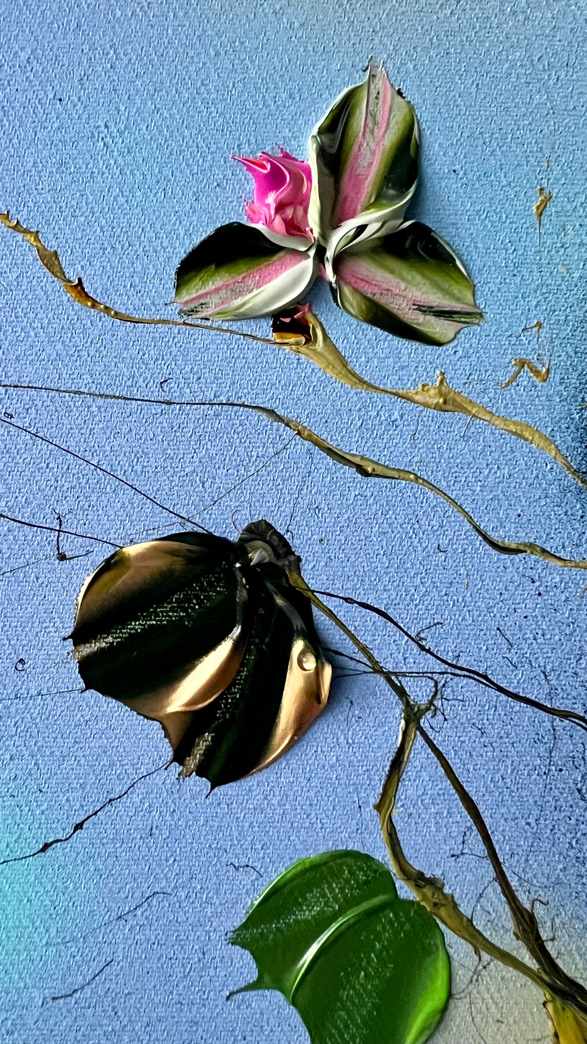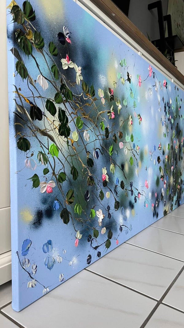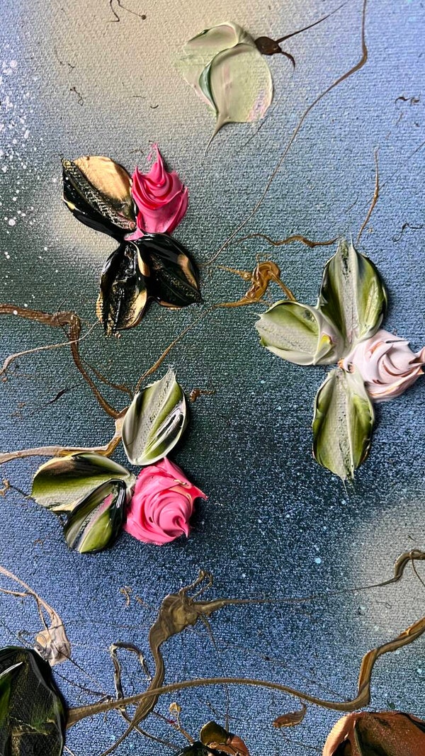I would like to invite you to immerse yourselves in a colorful yet calm world of impasto colors full of meditative floral magic.