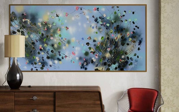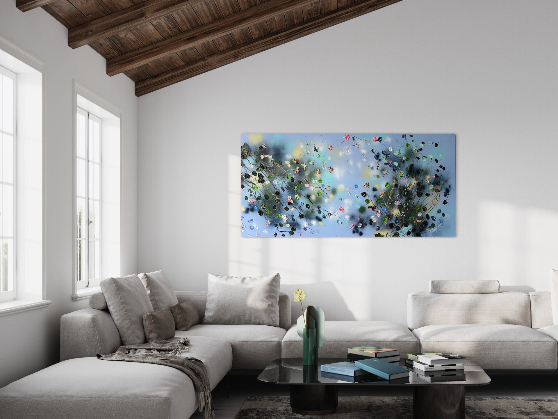 "Floral Minuet in Floral Blue" romantic floral very large painting