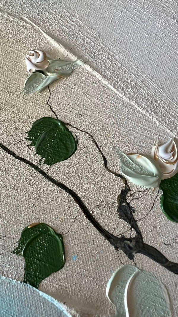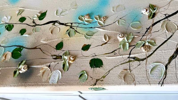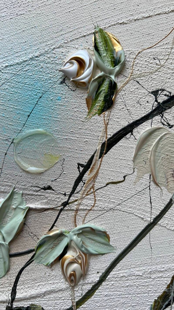 Style: Influenced by abstract expressionism and modern art, my technique involves original mixed media applications, incorporating undiluted acrylic paint, ink, gel medium, and structure paste onto the canvas. I take pleasure in creating impasto abstract paintings, utilizing spatulas, writing tubes, and everyday fruit knives to construct three-dimensional flowers and surfaces in my pieces. Transparent paint is strategically integrated to accentuate the inherent airiness and lightness inspired by nature.