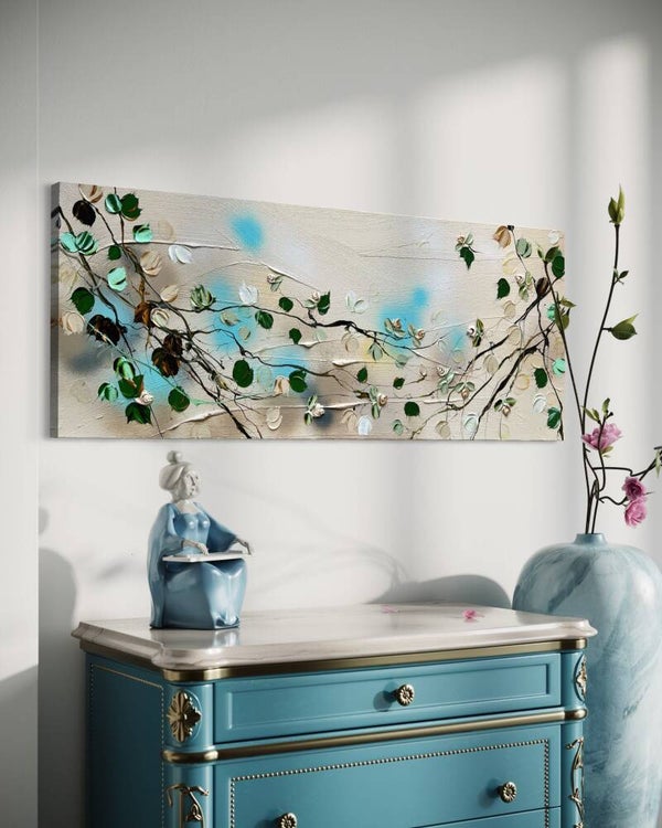 "Caramel Roses" encapsulates a distinctive quality that distinguishes it within the realm of art. This piece, measuring 100x40x4 cm (39.4 x 15.7 x 1.7 inches), is not only a standalone artwork but also complements and harmonizes seamlessly when paired with another from the series. Its versatile nature allows for both horizontal and vertical display options, providing endless combinations and possibilities.