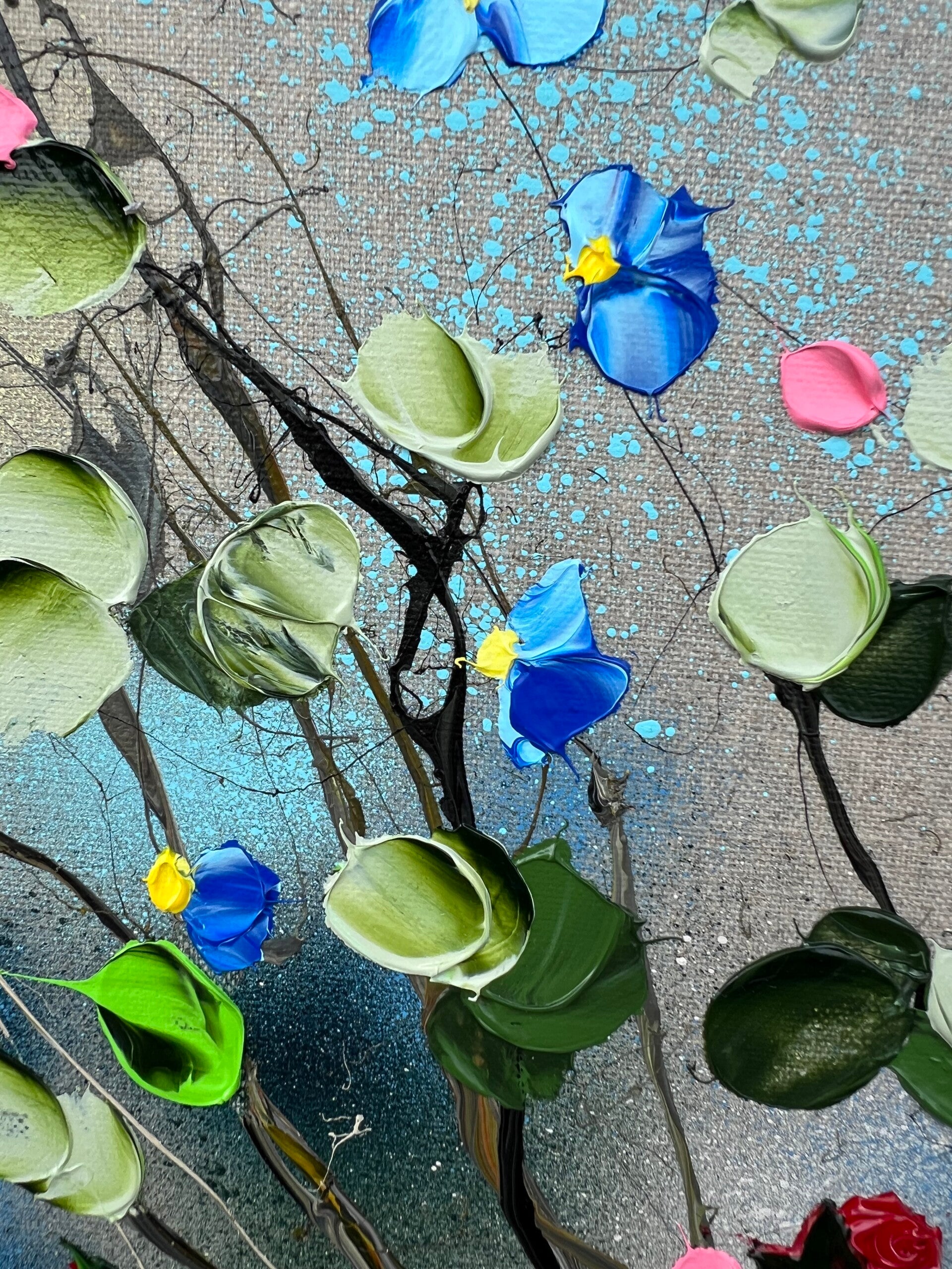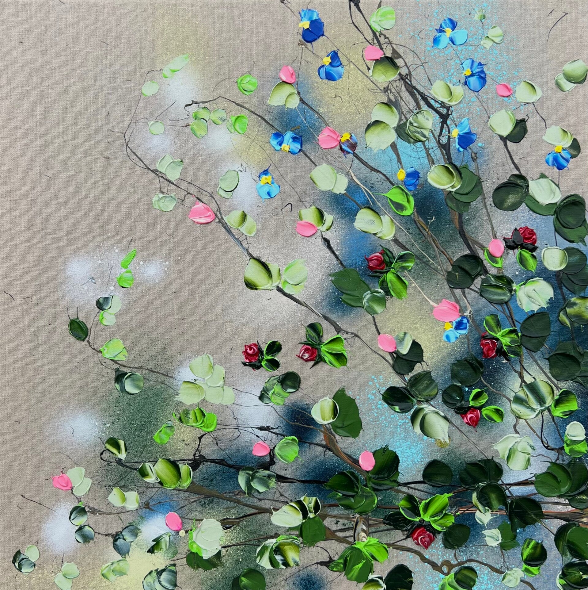 "Rest in Itself VI" impasto modern floral artwork on linen, 50x50cm