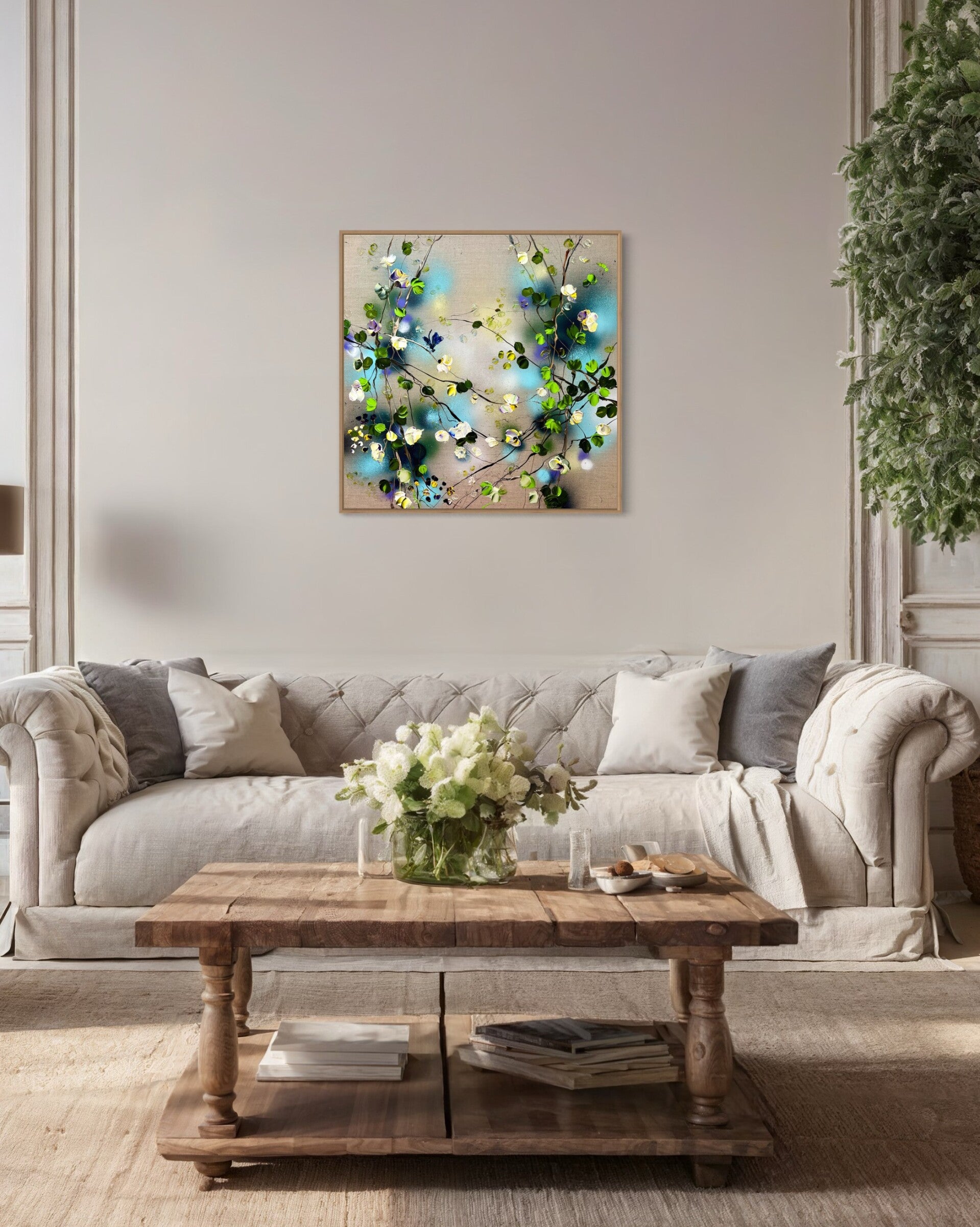 Experience the joyful energy of „White Flowers" and let it bring springtime magic into your space.