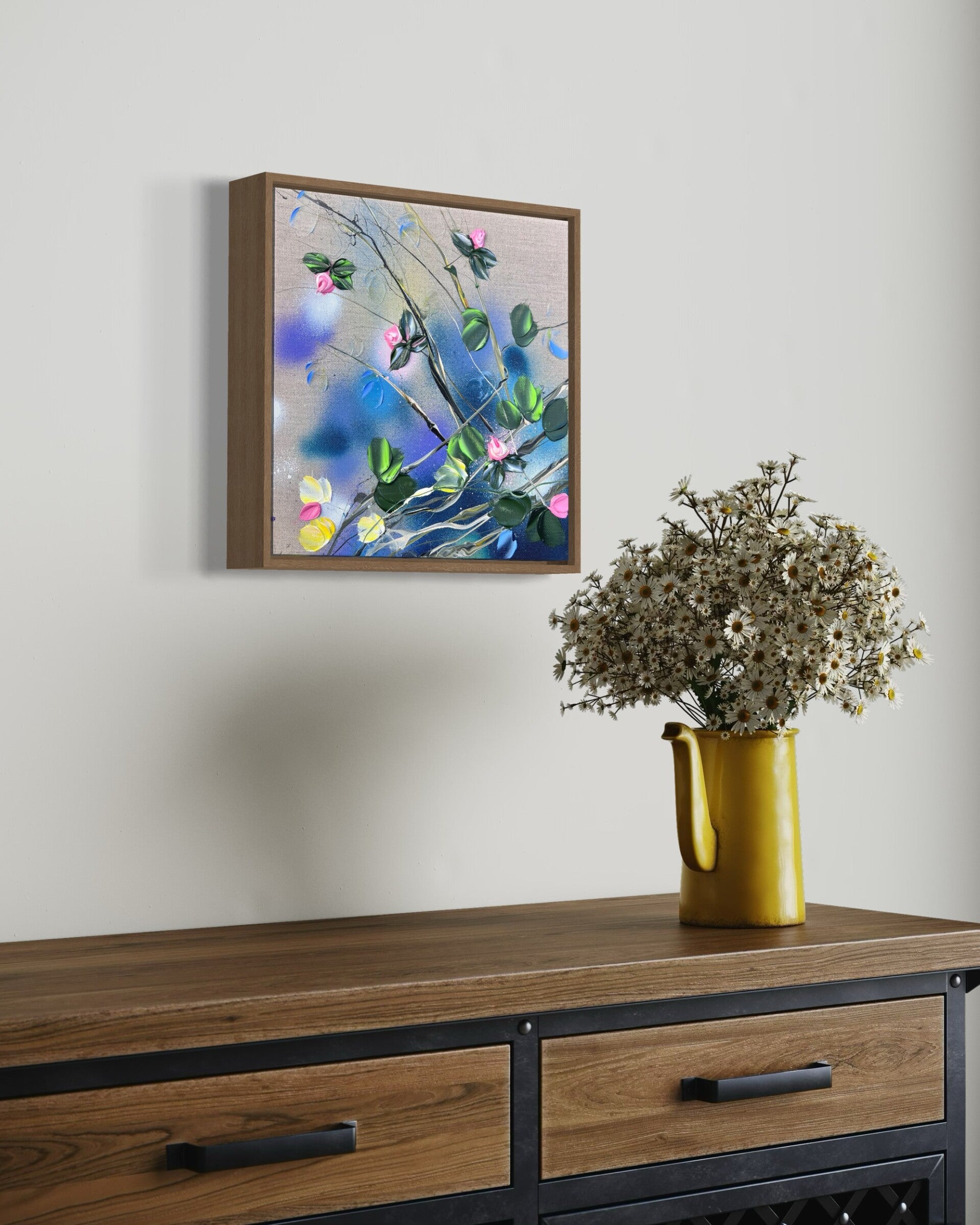 Consider these beautifully crafted, one-of-a-kind acrylic paintings with a textured finish. Each canvas measures 30x30x4 cm (11,6 x 11,6 x 1,8 in) and features a stunning floral design, showcasing vibrant roses that will captivate and inspire. Whether you're looking to add a touch of color to your home decor or surprise a special someone, these paintings make for a thoughtful and heartfelt present. With their dreamy and romantic motifs, they're sure to evoke emotions and make hearts flutter on any occasion, especially the day of love. Treat yourself or your loved ones to an original work of art that will be cherished for years to come.