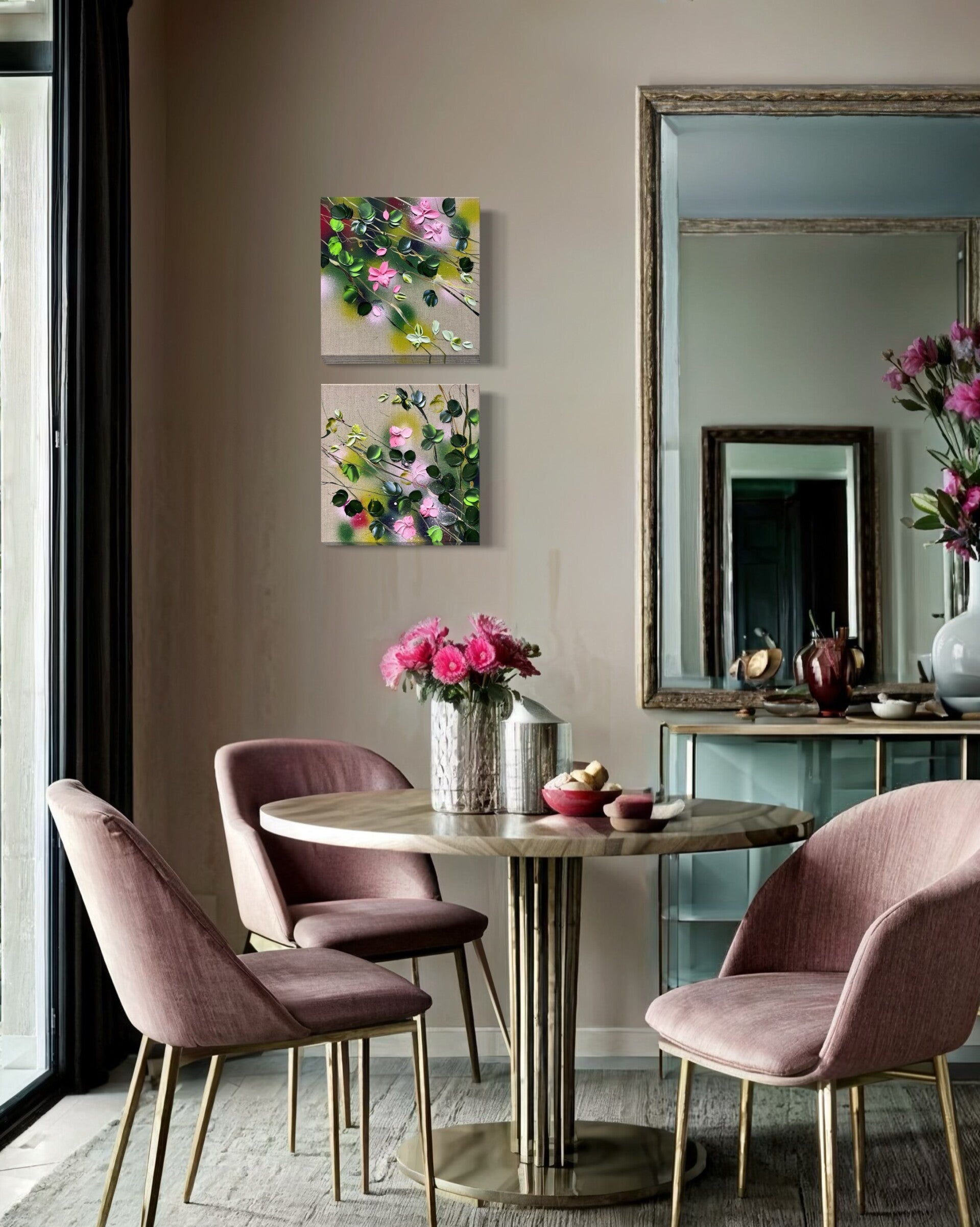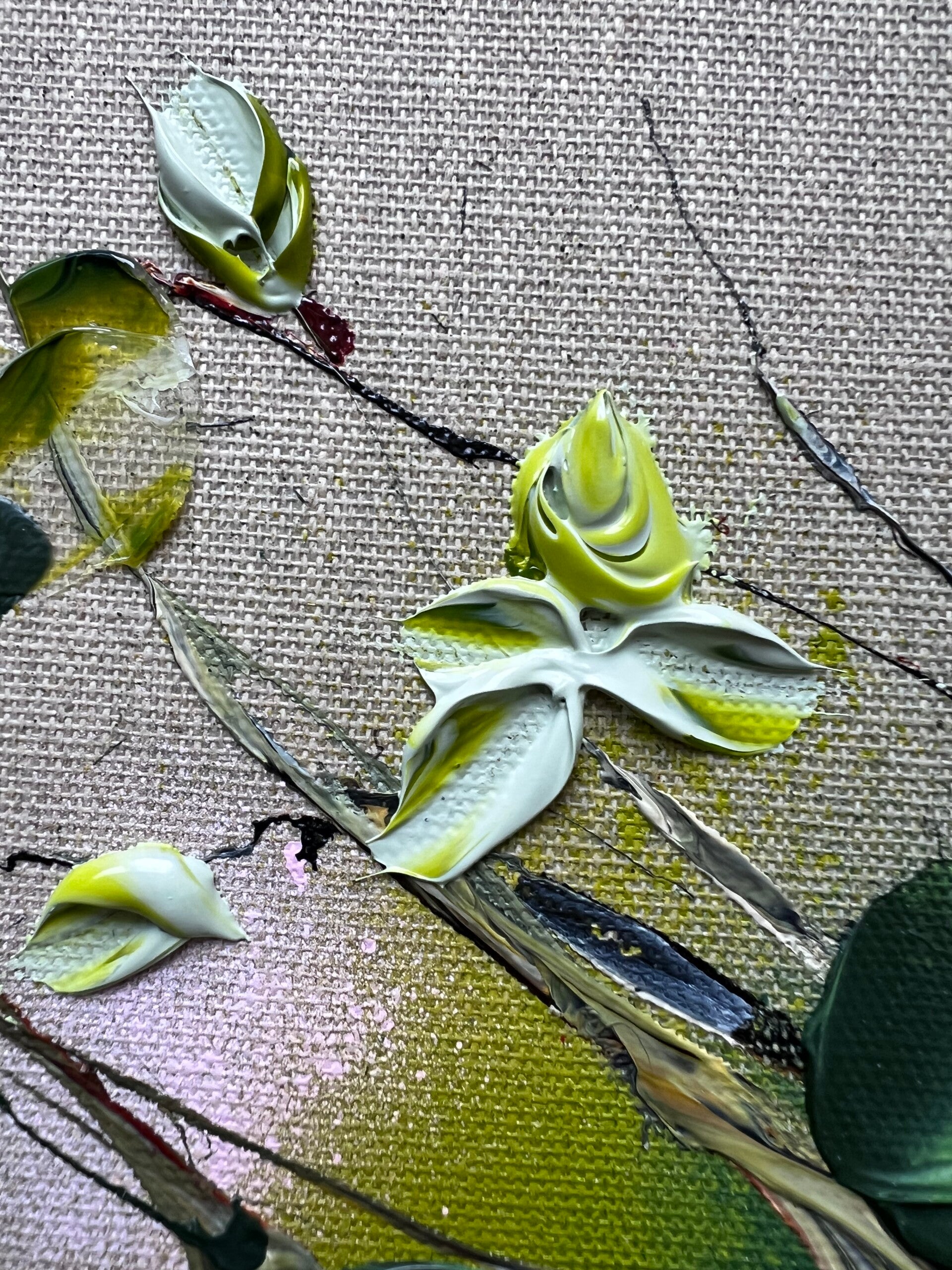 Consider these beautifully crafted, one-of-a-kind acrylic paintings with a textured finish. Each canvas measures 30x30x4 cm (11,6 x 11,6 x 1,8 in) and features a stunning floral design, showcasing vibrant roses that will captivate and inspire. Whether you're looking to add a touch of color to your home decor or surprise a special someone, these paintings make for a thoughtful and heartfelt present. With their dreamy and romantic motifs, they're sure to evoke emotions and make hearts flutter on any occasion, especially the day of love. Treat yourself or your loved ones to an original work of art that will be cherished for years to come.