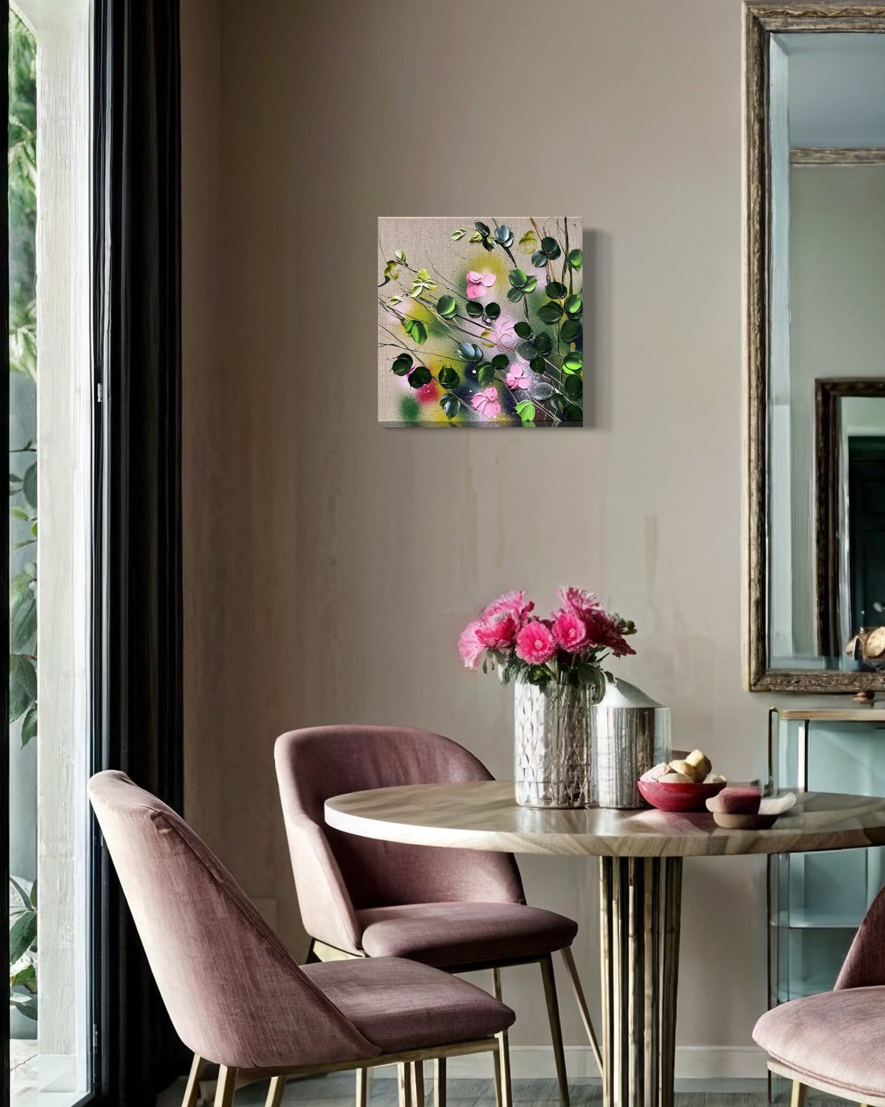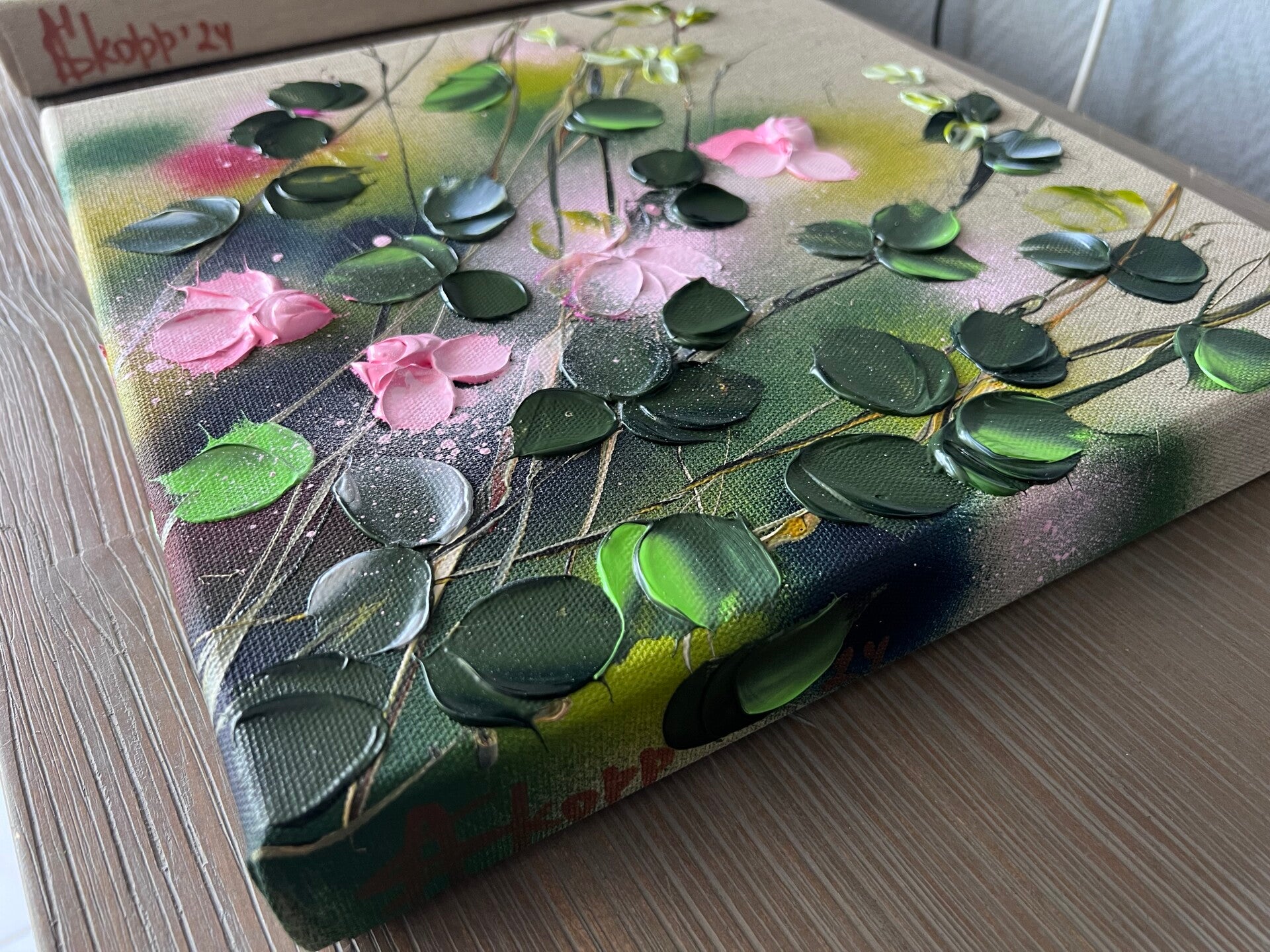 Garden Flowers II - textured impressionistic small art, 30x30x4 cm