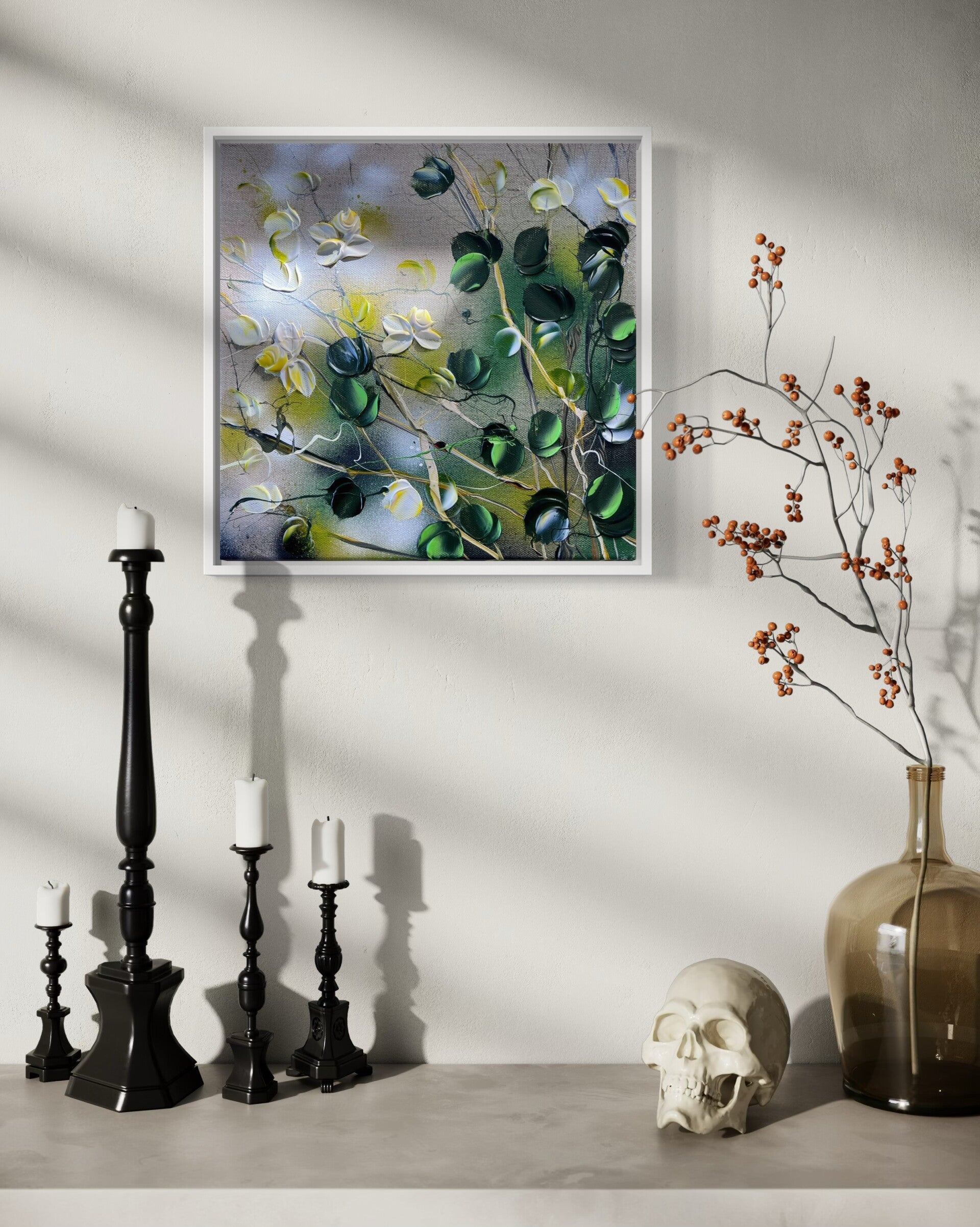 Consider these beautifully crafted, one-of-a-kind acrylic paintings with a textured finish. Each canvas measures 30x30x4 cm (11,6 x 11,6 x 1,8 in) and features a stunning floral design, showcasing vibrant roses that will captivate and inspire. Whether you're looking to add a touch of color to your home decor or surprise a special someone, these paintings make for a thoughtful and heartfelt present. With their dreamy and romantic motifs, they're sure to evoke emotions and make hearts flutter on any occasion, especially the day of love. Treat yourself or your loved ones to an original work of art that will be cherished for years to come.