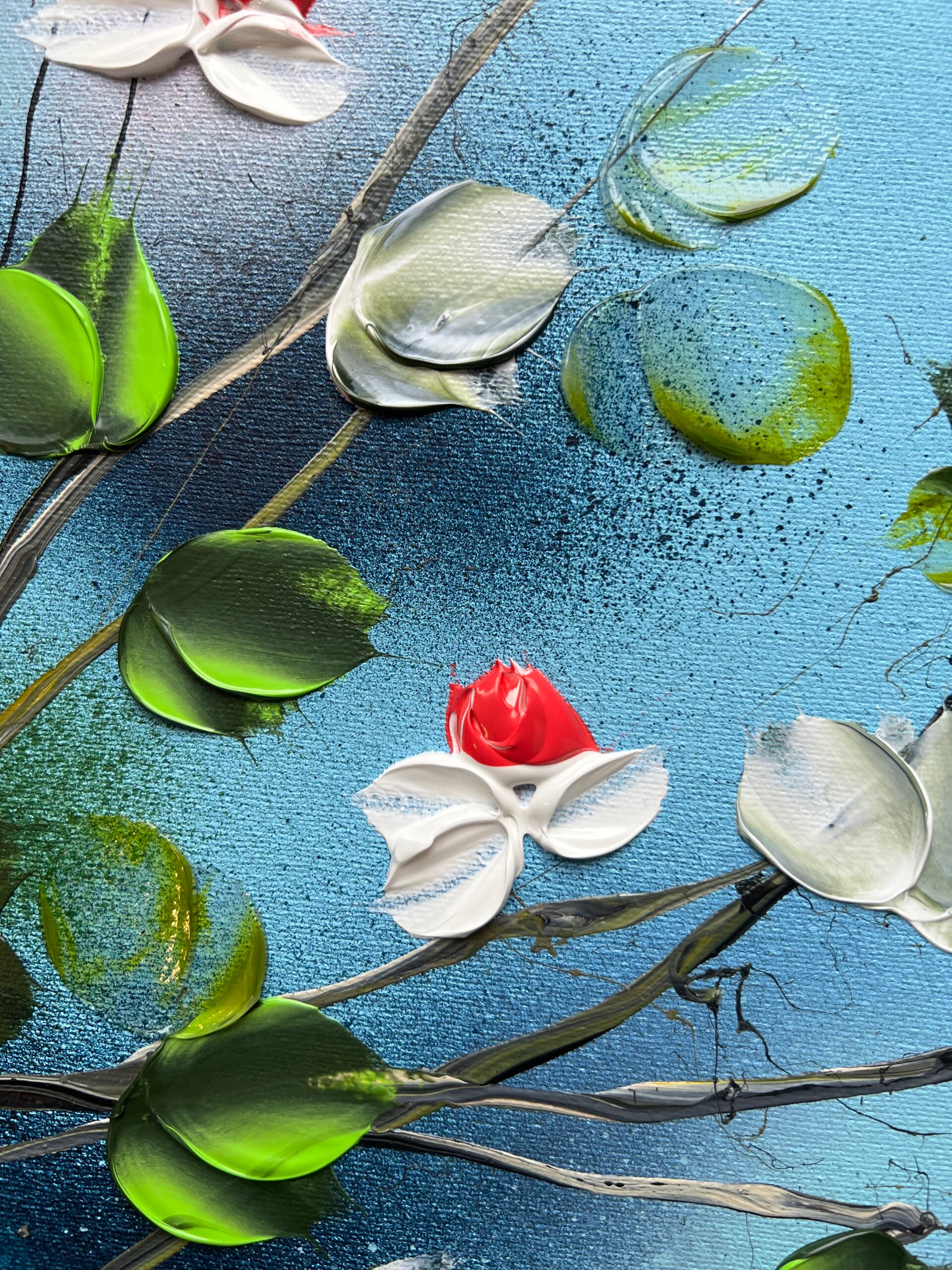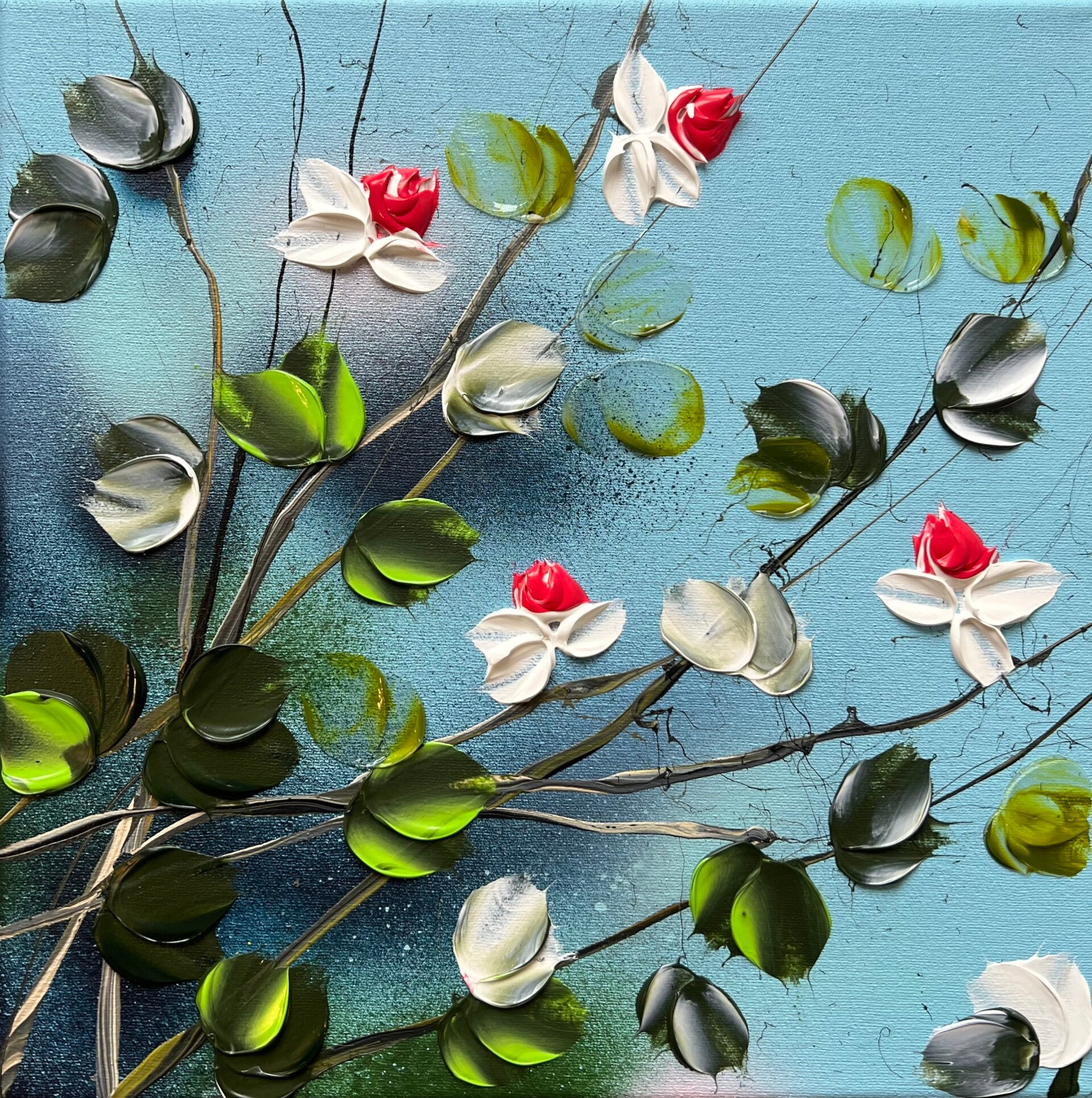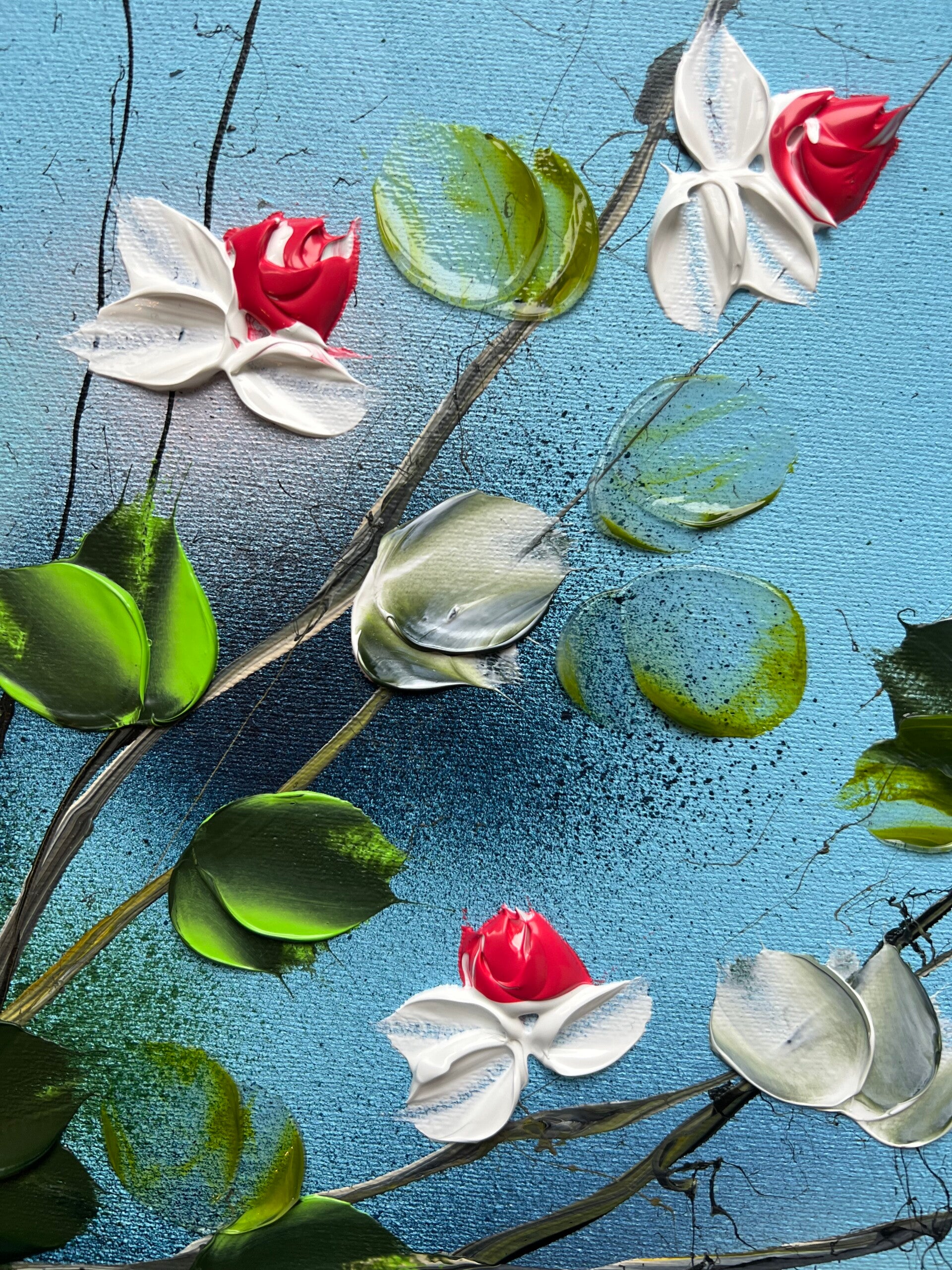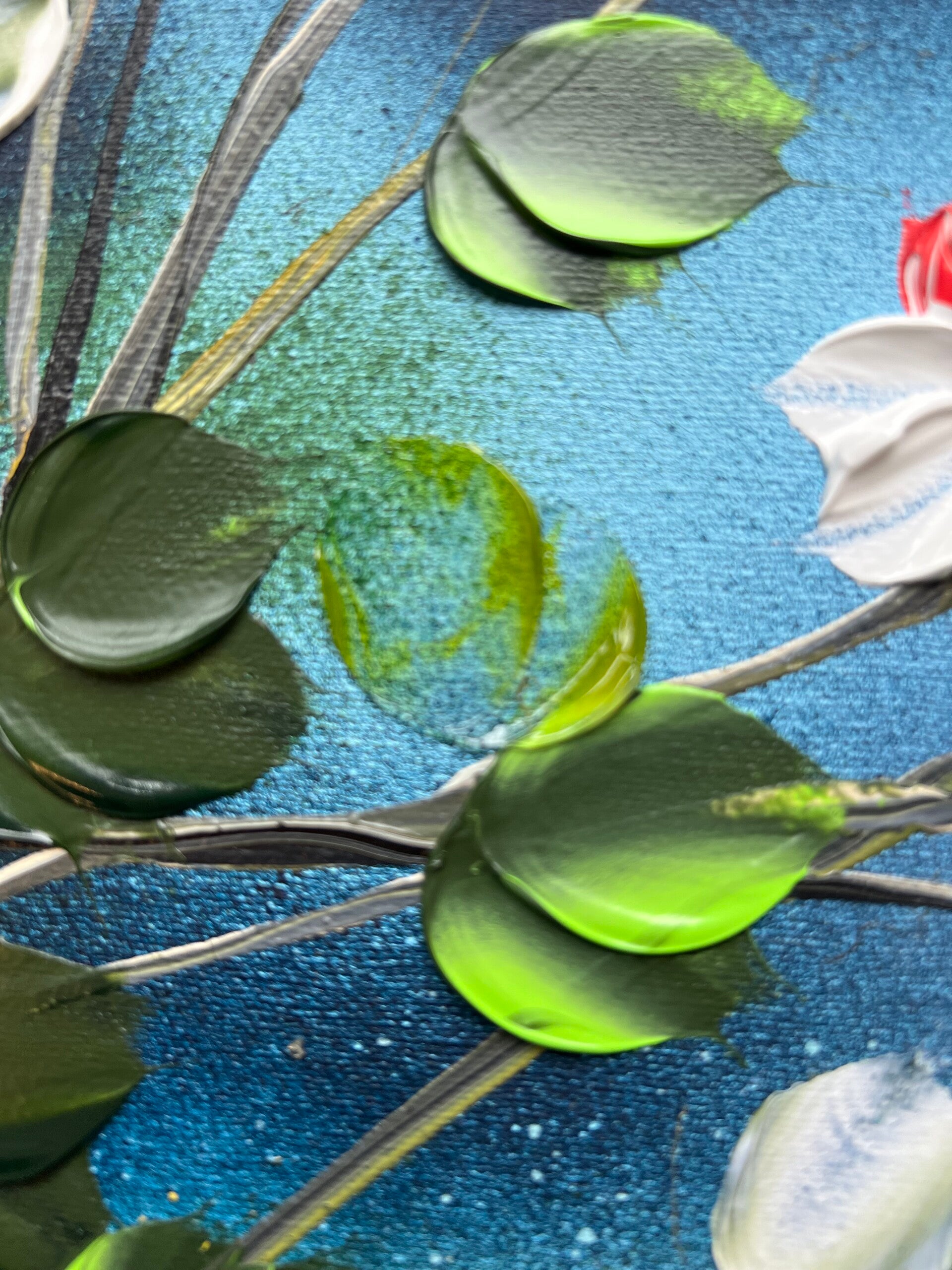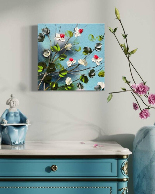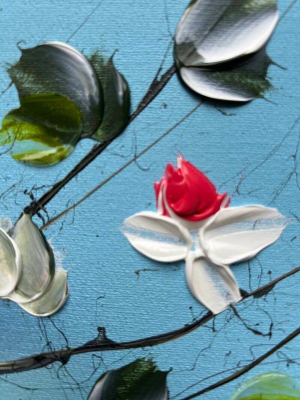 Consider these beautifully crafted, one-of-a-kind acrylic paintings with a textured finish. Each canvas measures 30x30x4 cm (11,6 x 11,6 x 1,8 in) and features a stunning floral design, showcasing vibrant roses that will captivate and inspire. Whether you're looking to add a touch of color to your home decor or surprise a special someone, these paintings make for a thoughtful and heartfelt present. With their dreamy and romantic motifs, they're sure to evoke emotions and make hearts flutter on any occasion, especially the day of love. Treat yourself or your loved ones to an original work of art that will be cherished for years to come.
