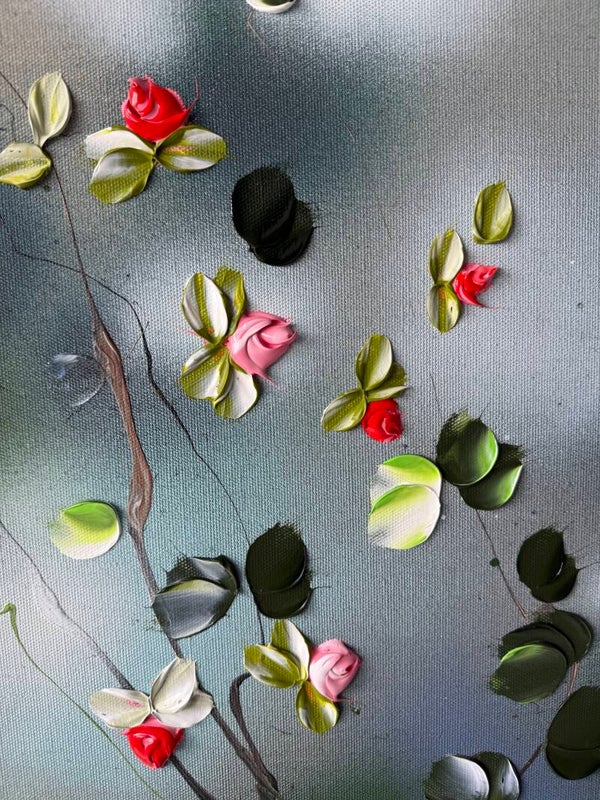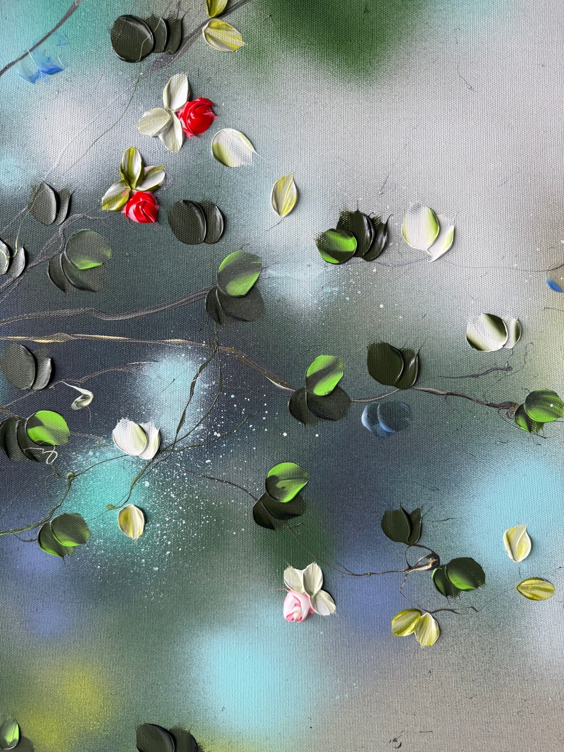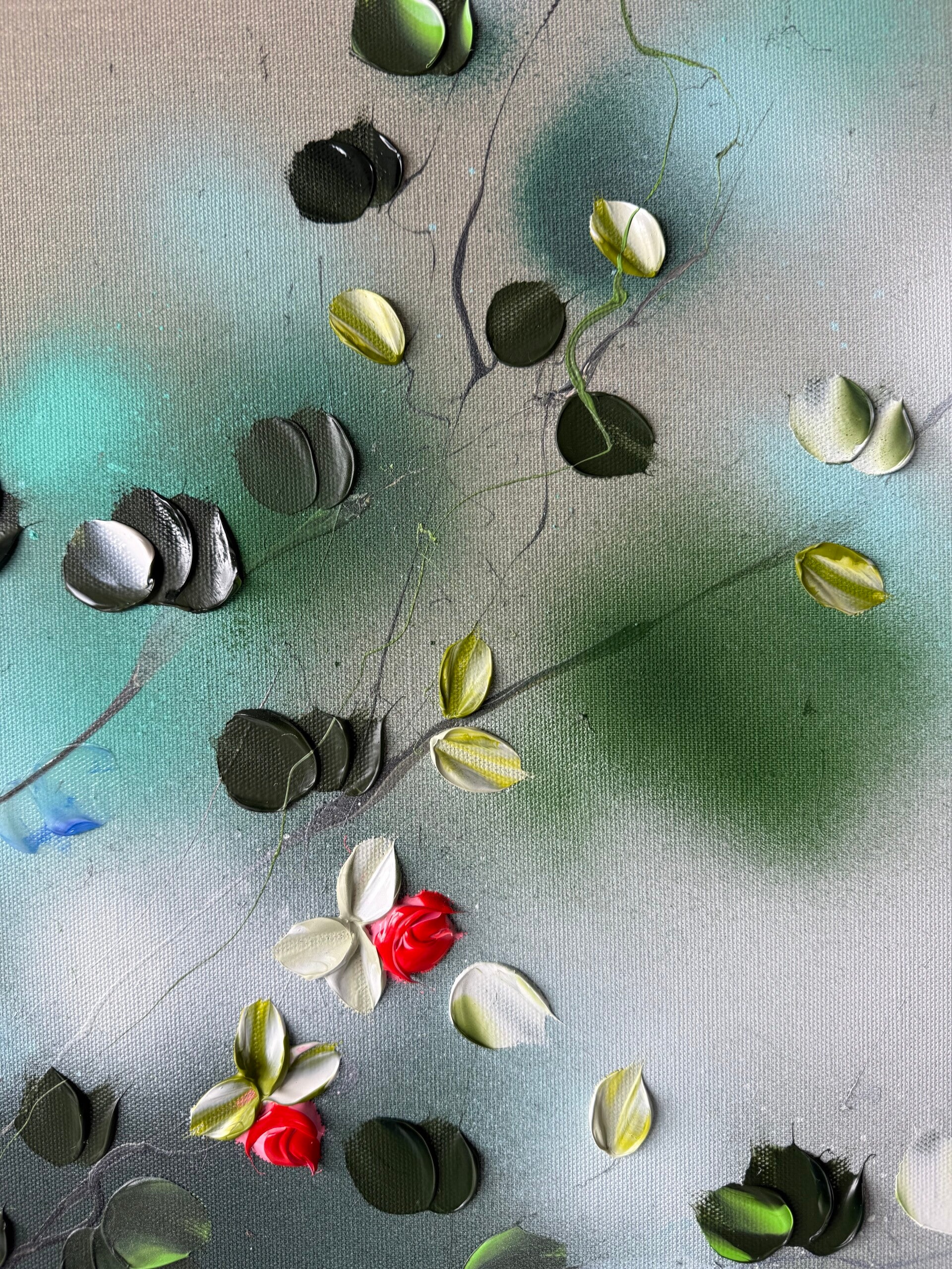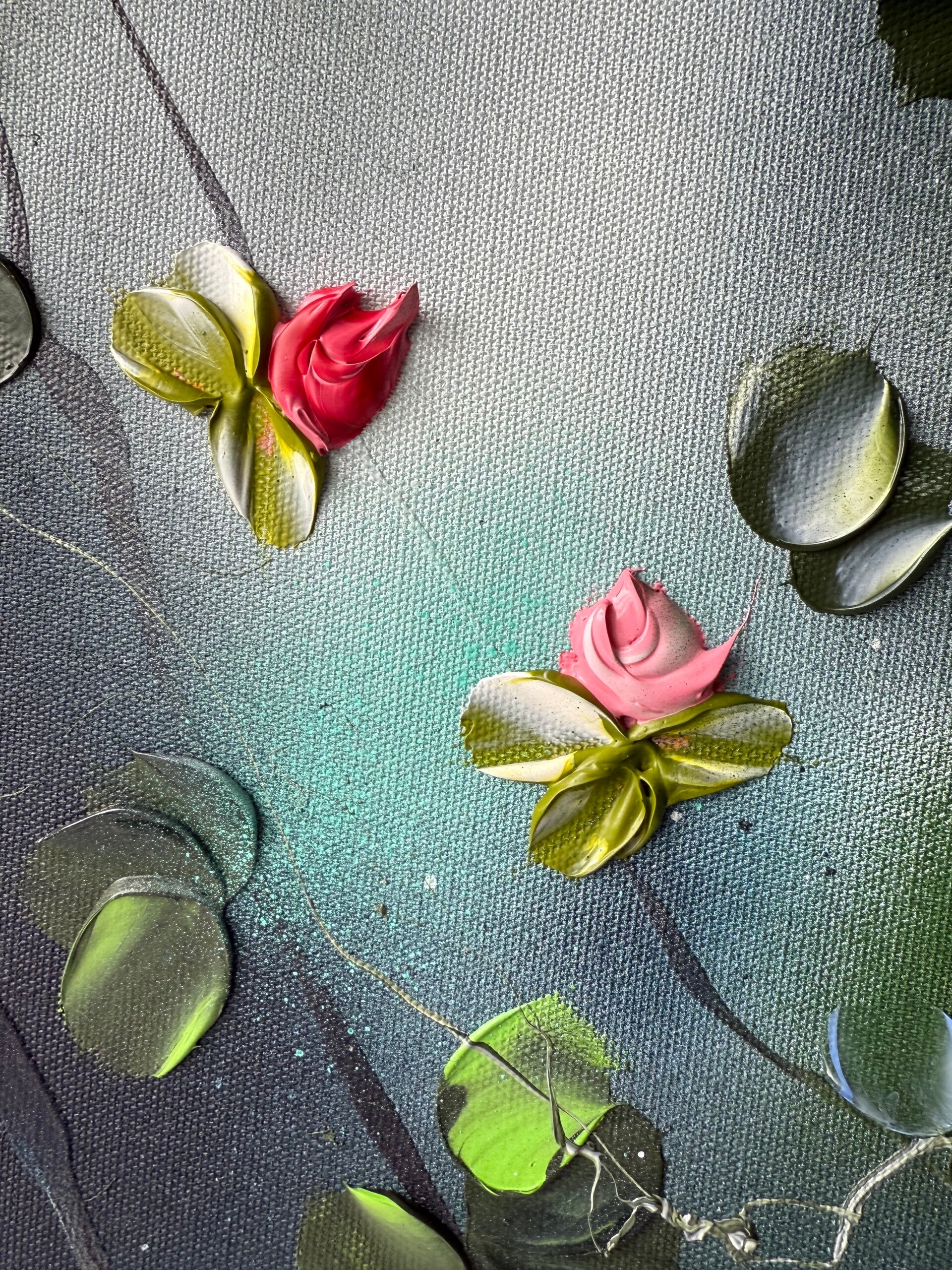 Explore the captivating textures and hues of impasto. Drawing from elements of abstract expressionism and contemporary art, my technique incorporates a blend of undiluted acrylic paints, inks, and gels, capturing the essence of meditative floral magic.