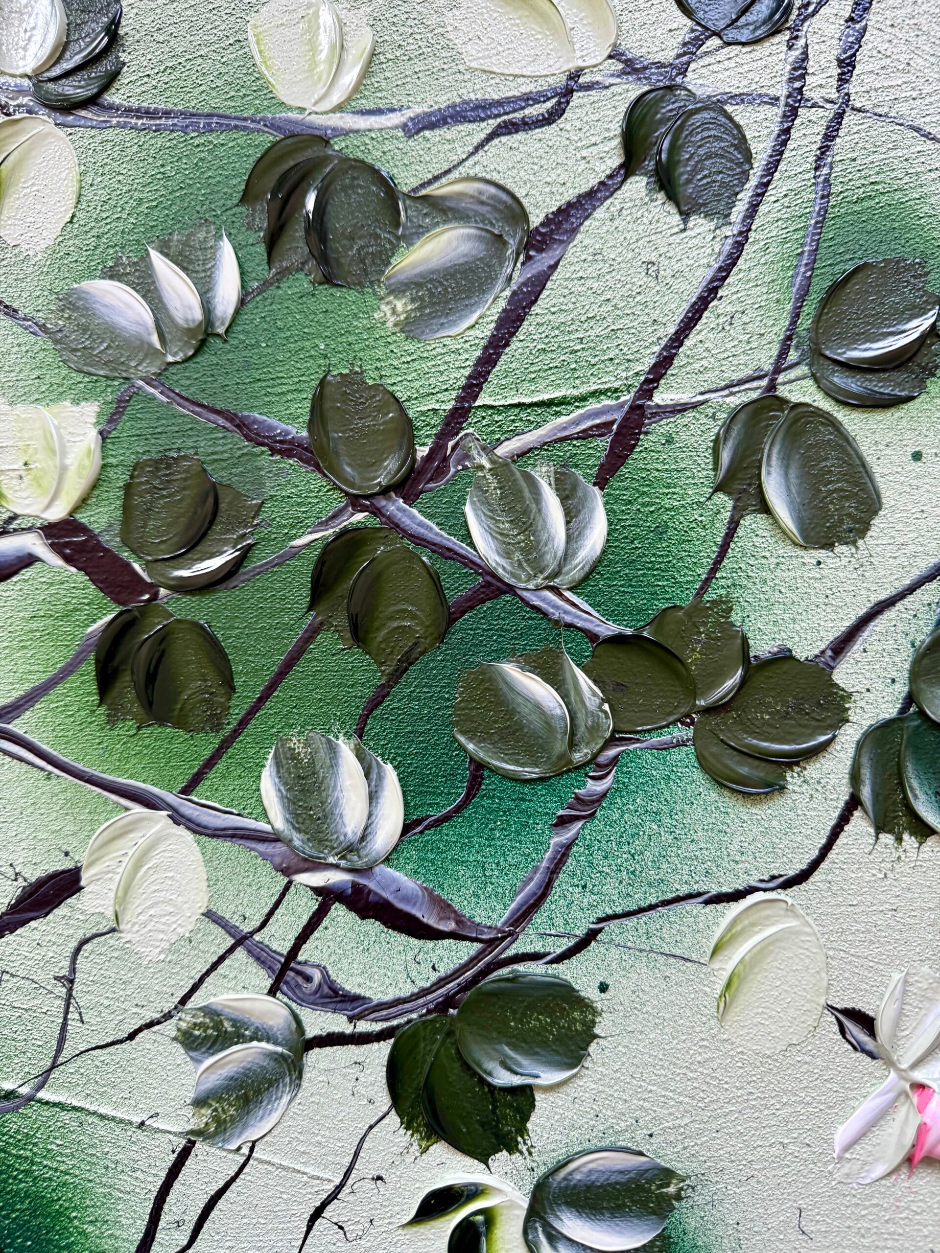 Floral paintings that are shiny, perfect for combining with each other.