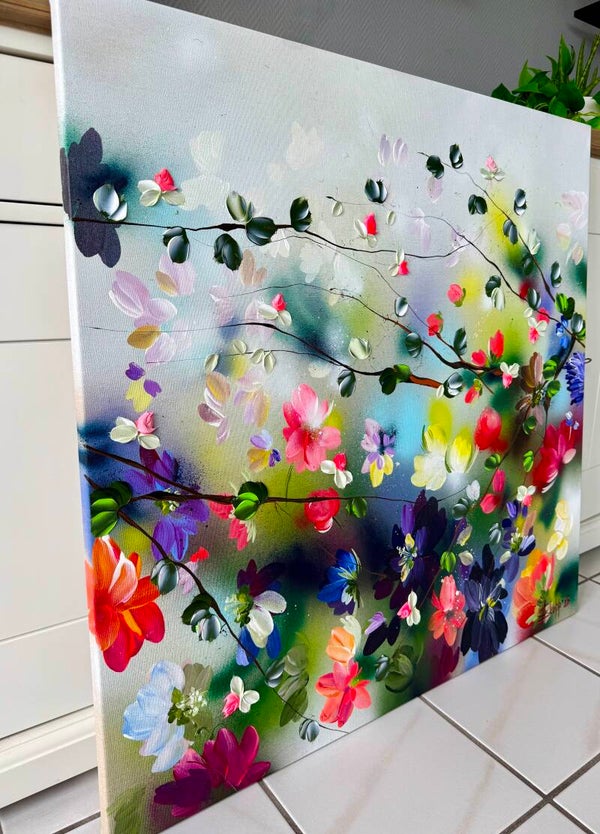 Immerse yourself in the lively energy of this vibrant piece and let it bring the warmth and joy of spring into your home.