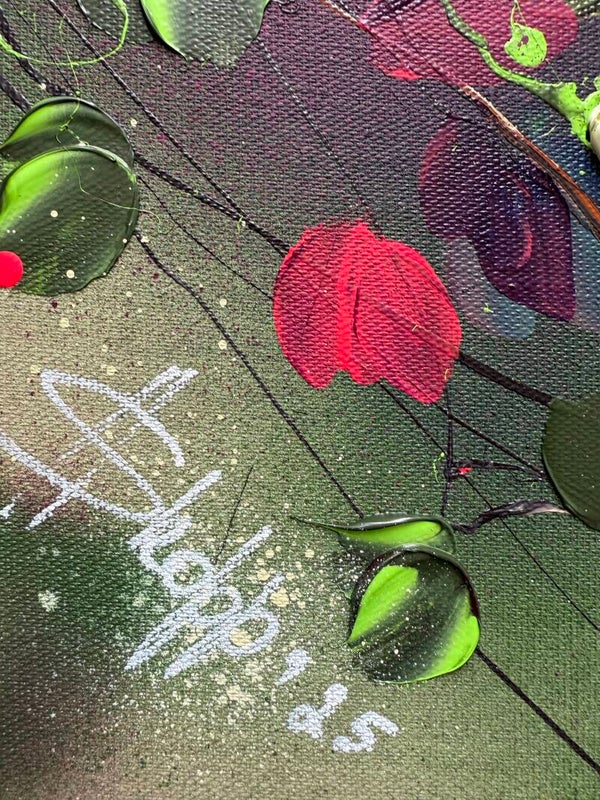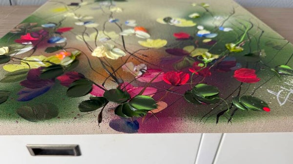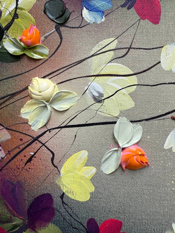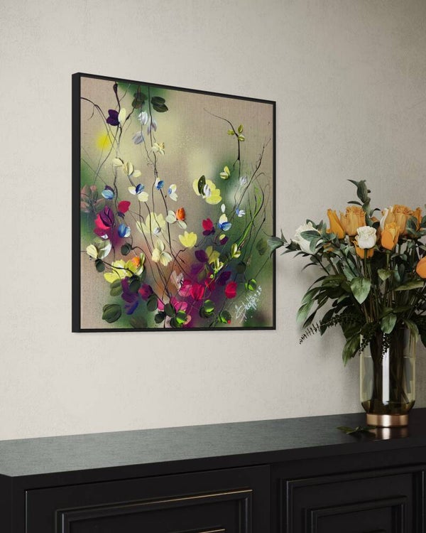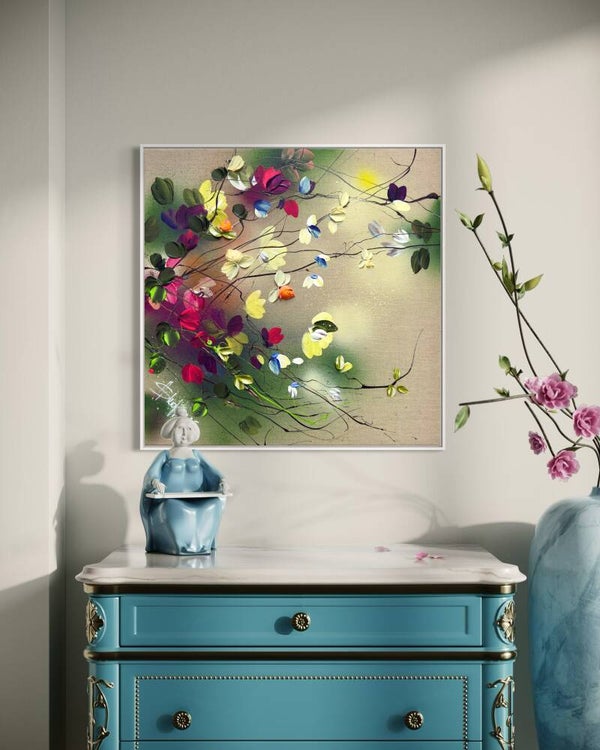 "Nature's Palette" floral art on linen, 50 × 50 × 2 cm ( 19.7 × 19.7 × 0.8 in)