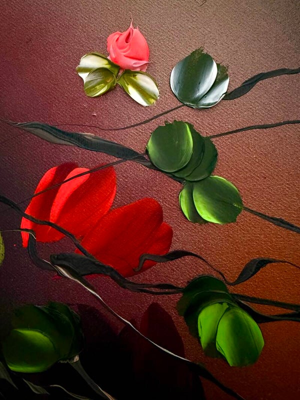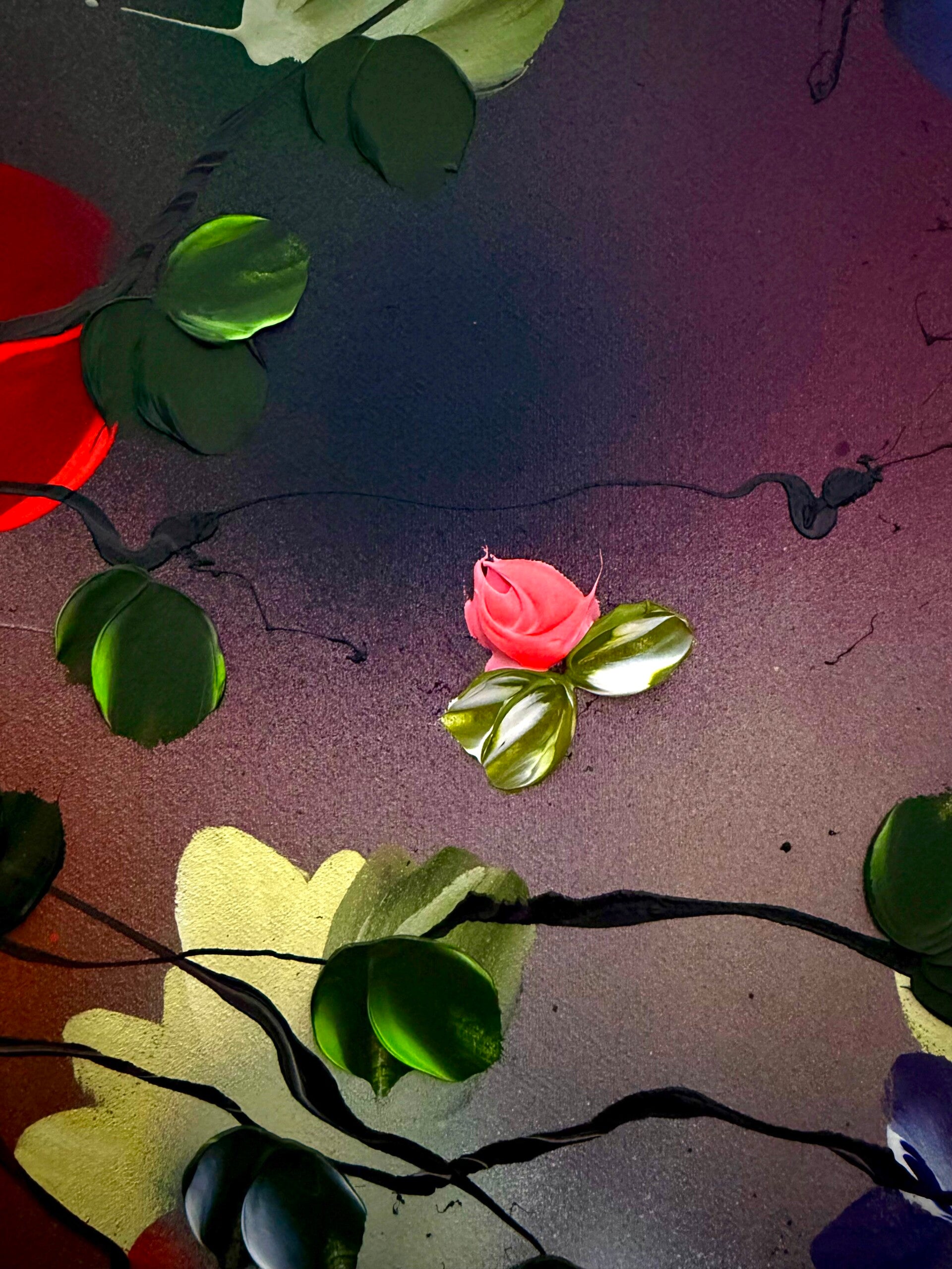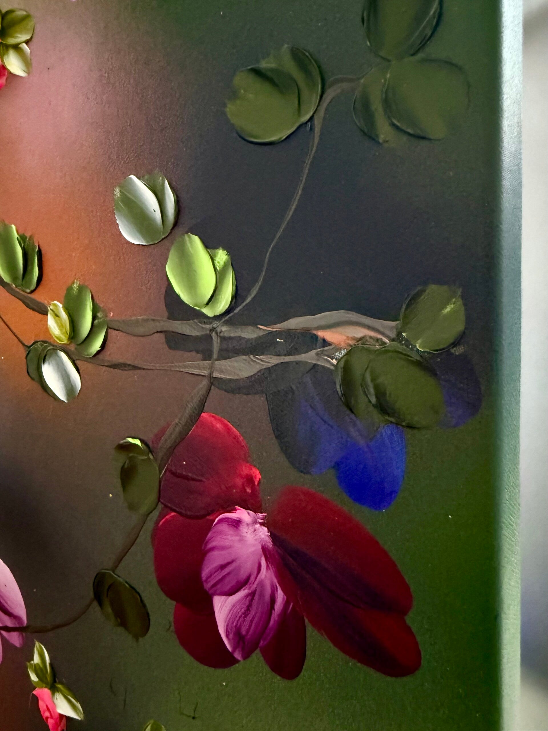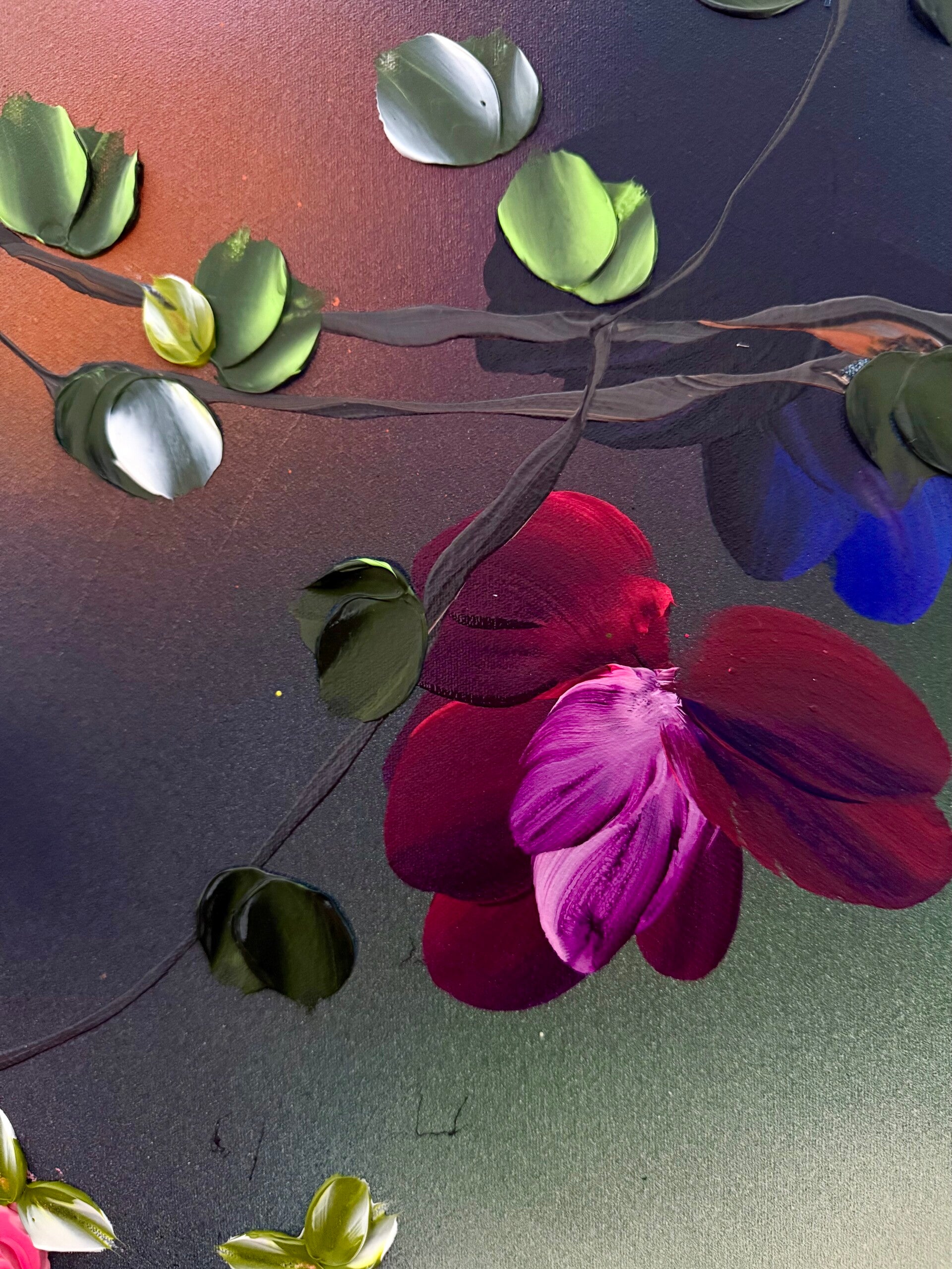The piece conveys a sense of lightness and freedom, almost like a dance in the wind — a visual translation of openness, harmony, and natural movement. Japanese Air draws on techniques from abstract painting as well as modern floral abstraction. Layer by layer, using undiluted acrylics, inks, and texture pastes, the surface builds into a complex structure that radiates both depth and dynamism.