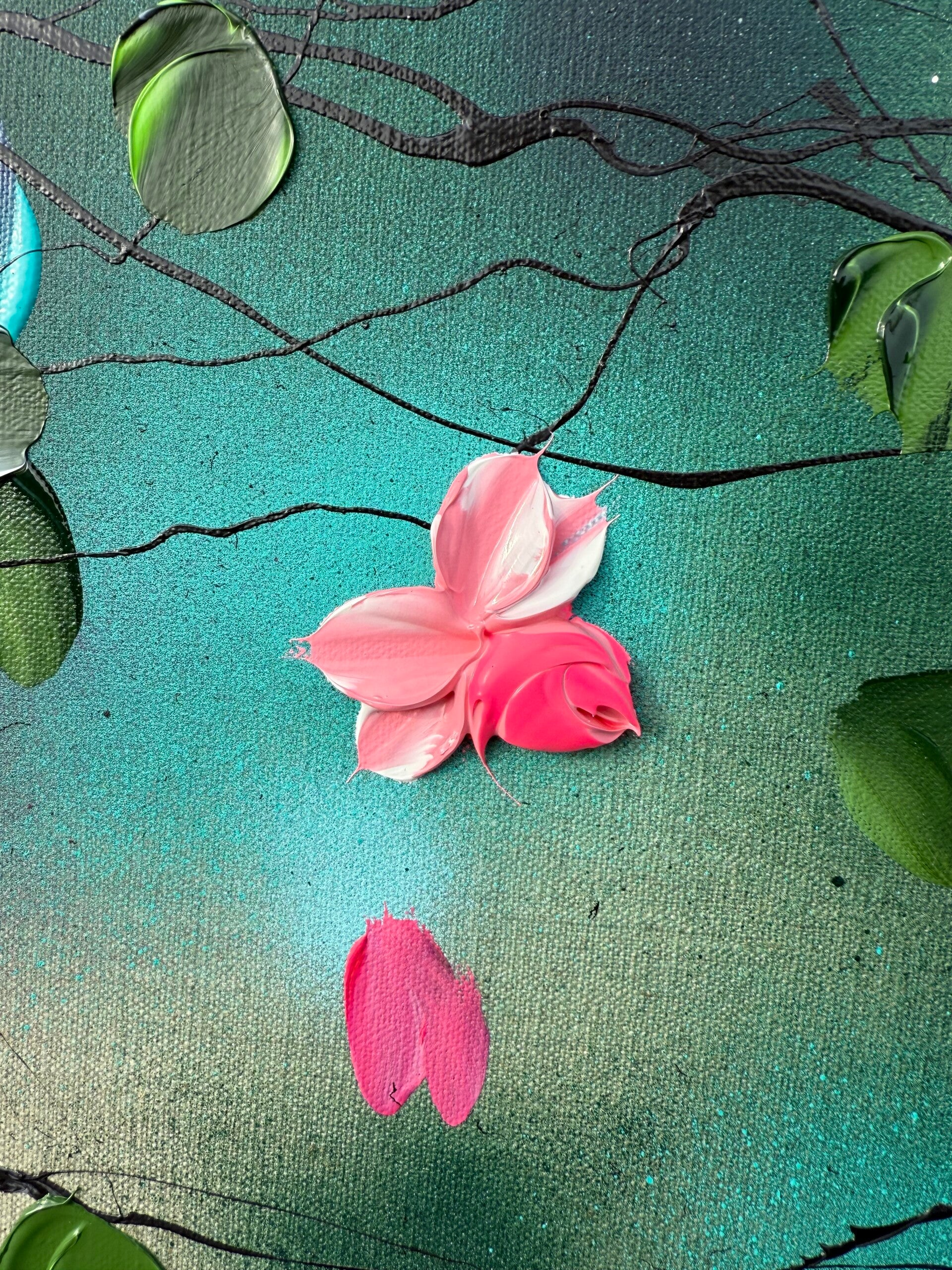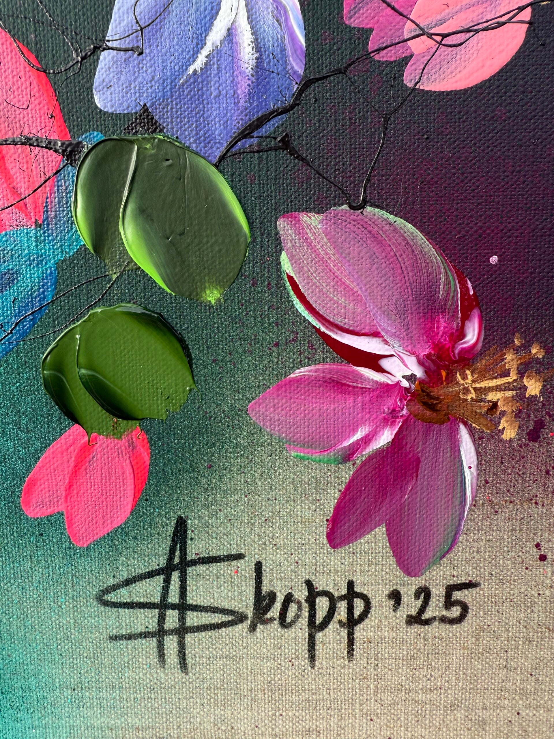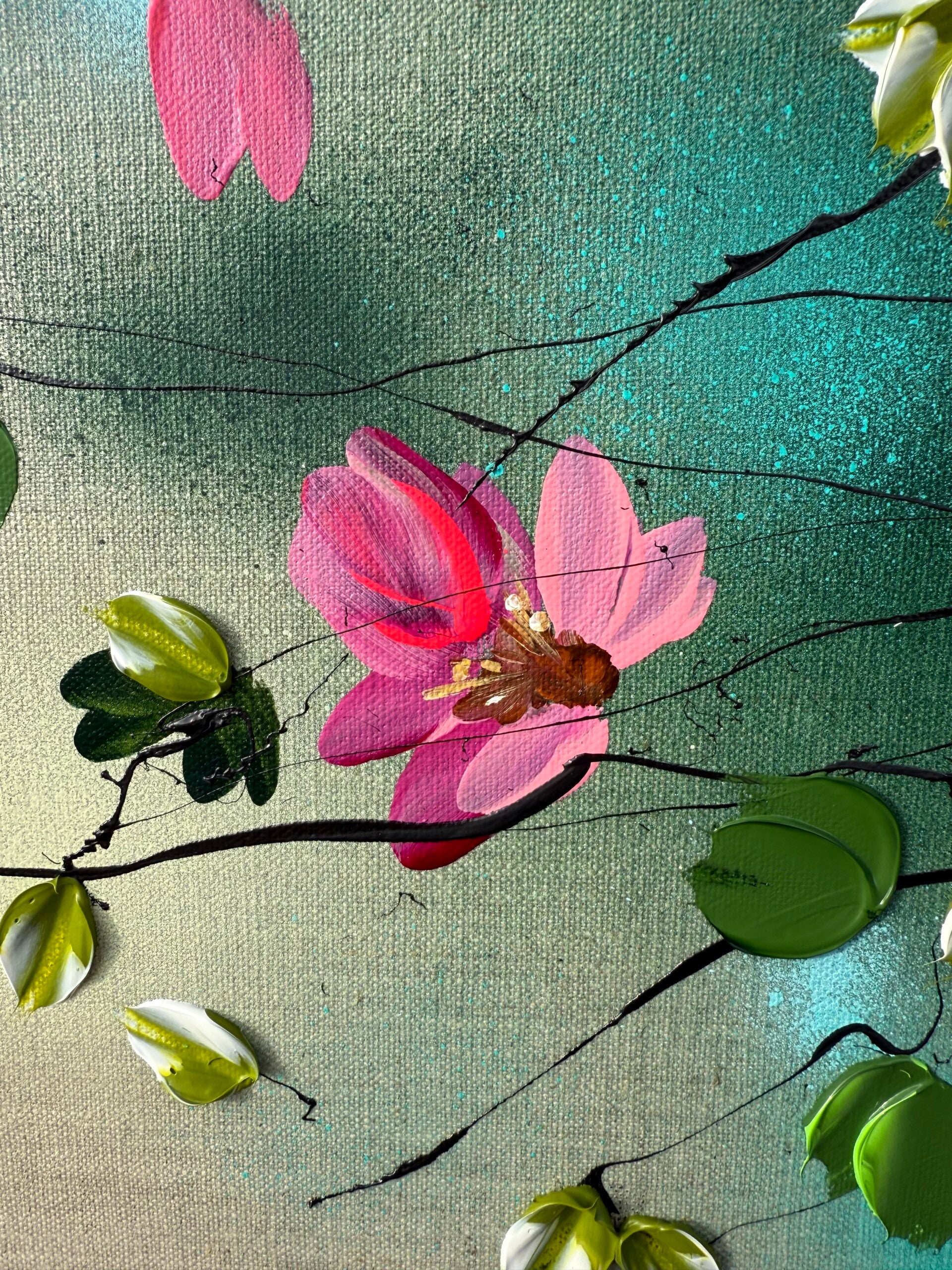 -Textured impasto blossoms with impressionistic character
