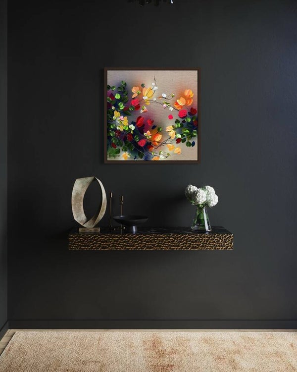Autumn Palette I - colorful floral art, 60 × 60 × 2 cm / 23.6 × 23.6 × 0.8 in