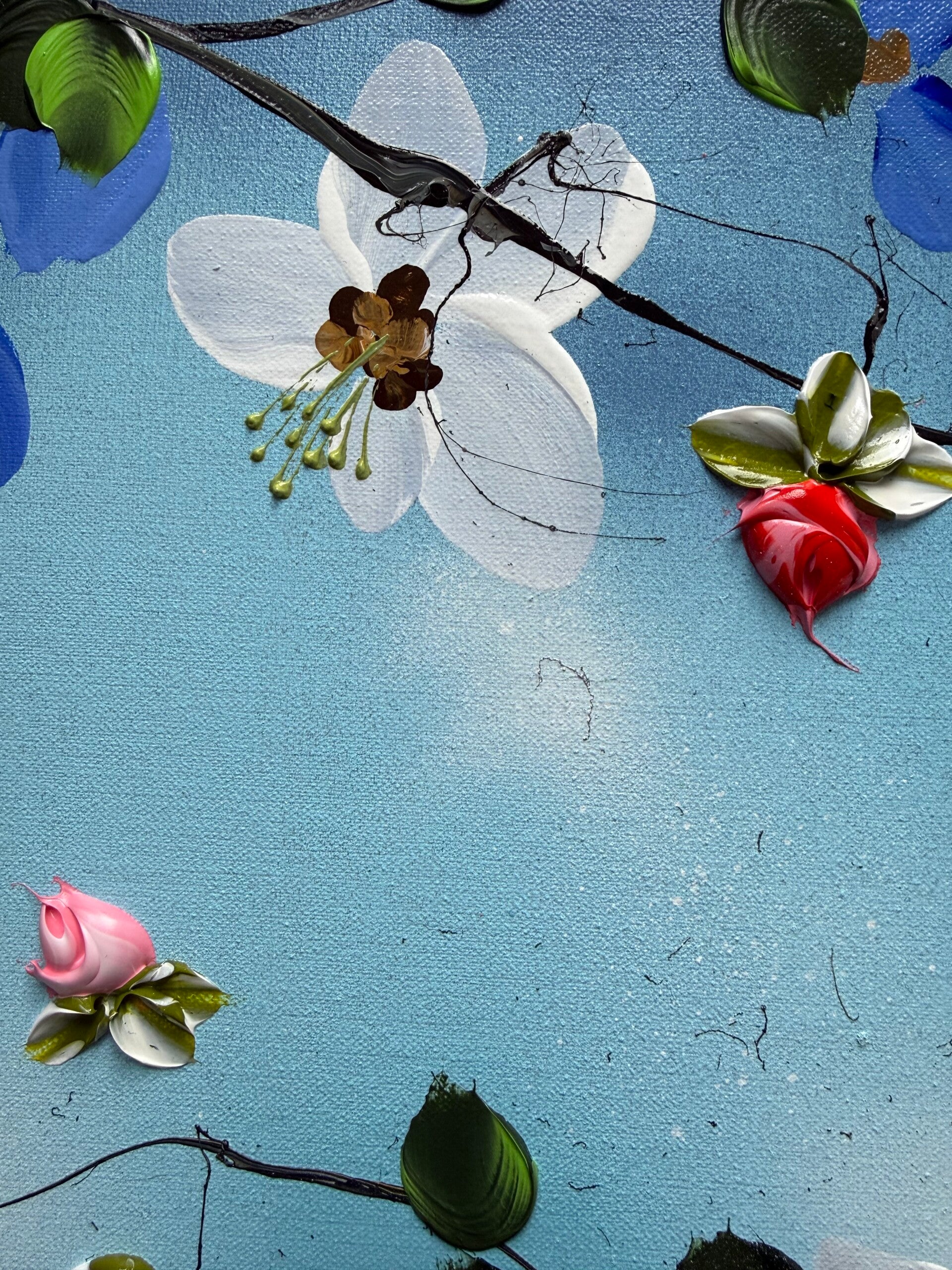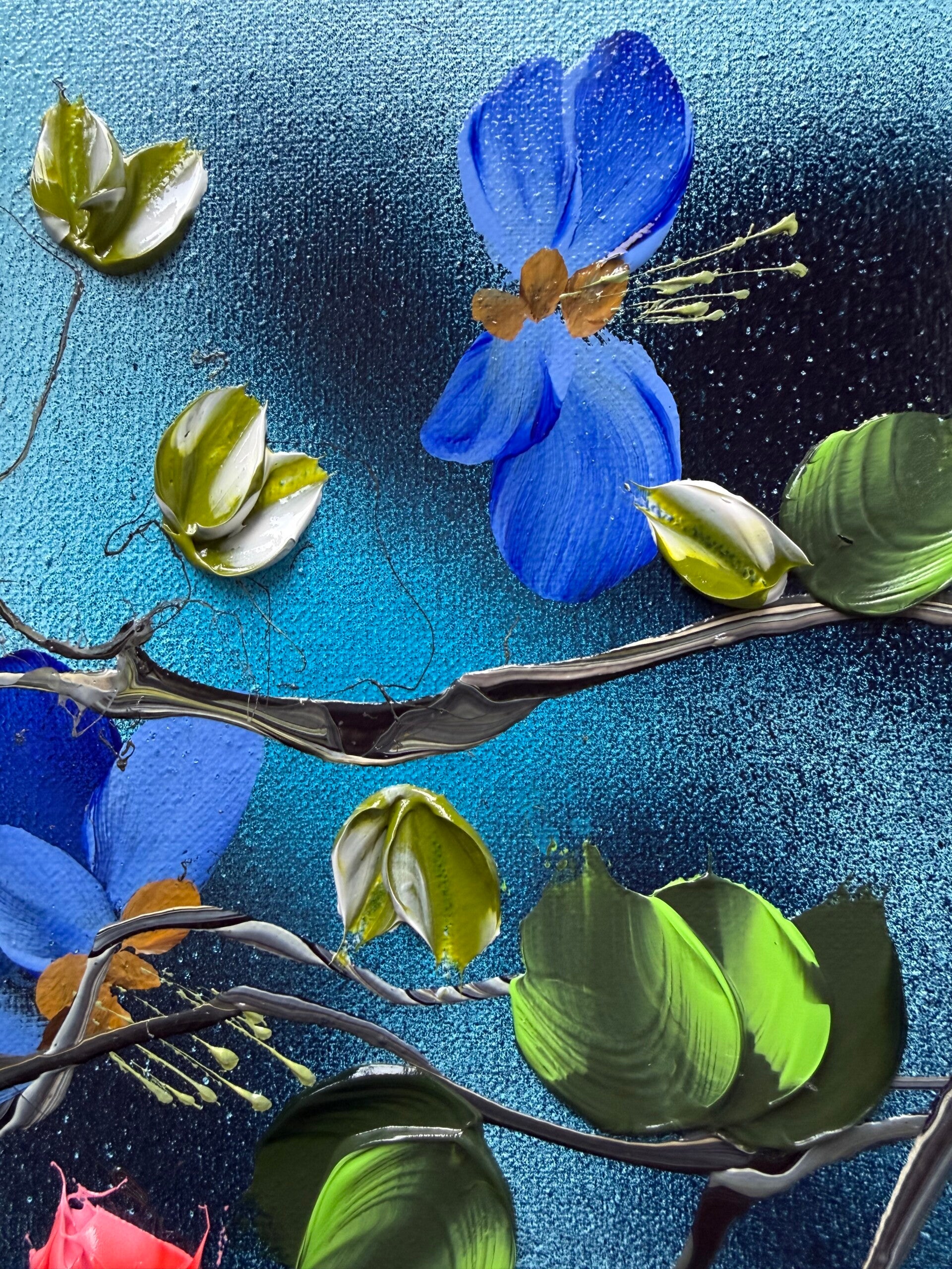 • Impasto blossoms created with palette knife
