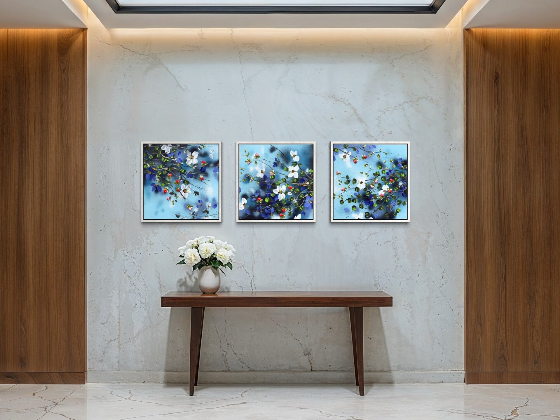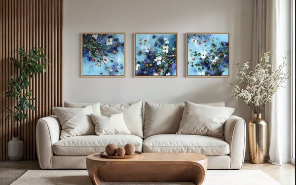 This artwork can be displayed on its own or together with other pieces from the same series. Combined, they may be arranged as a diptych or triptych, depending on the preferred layout.