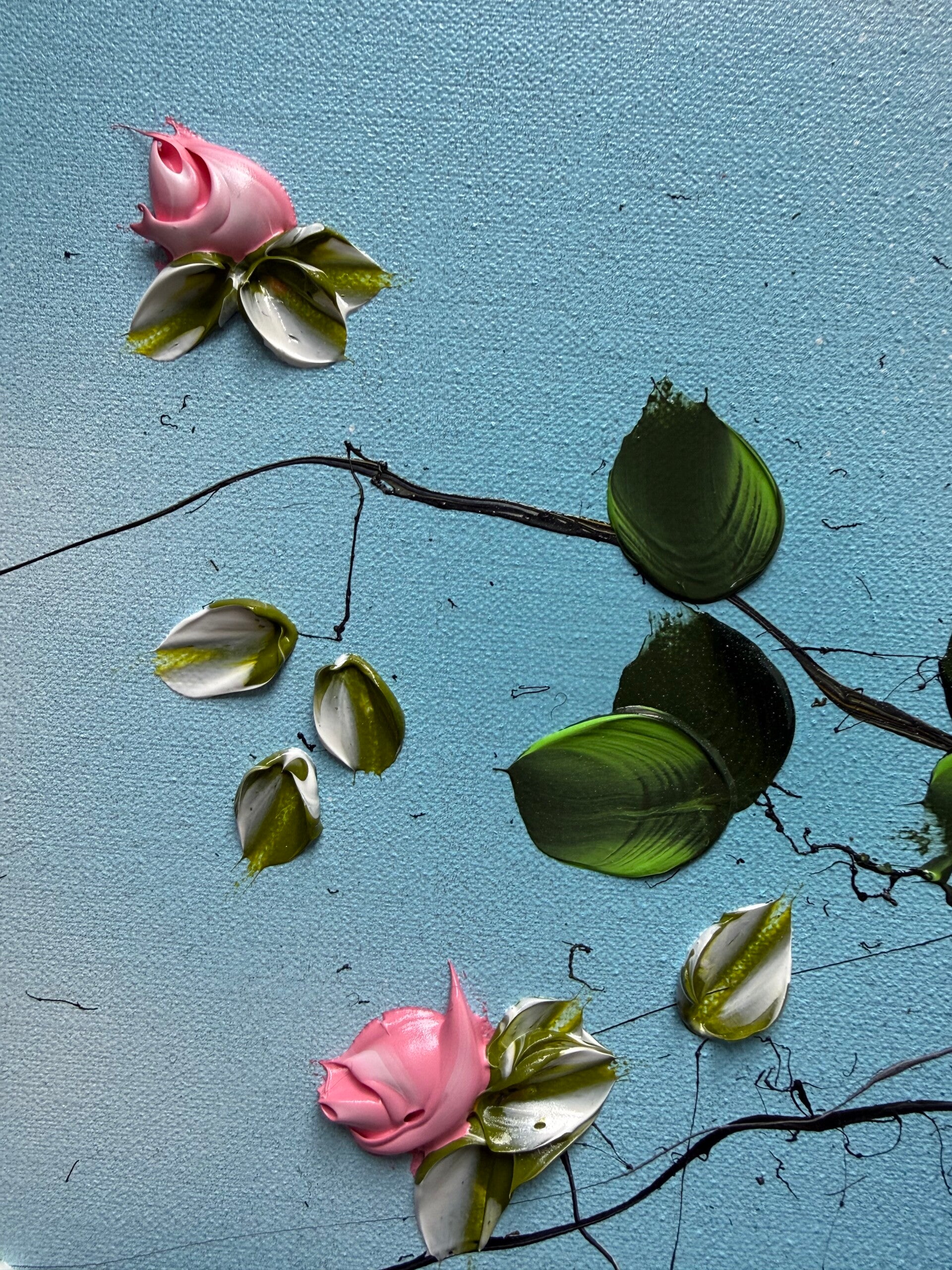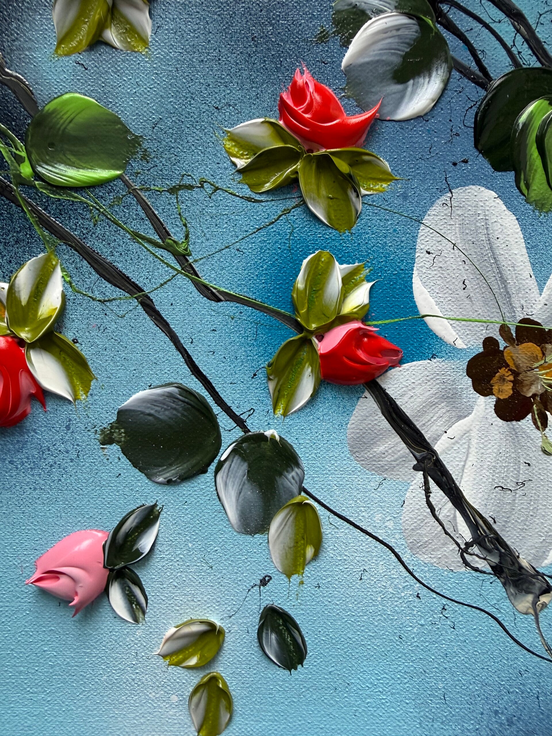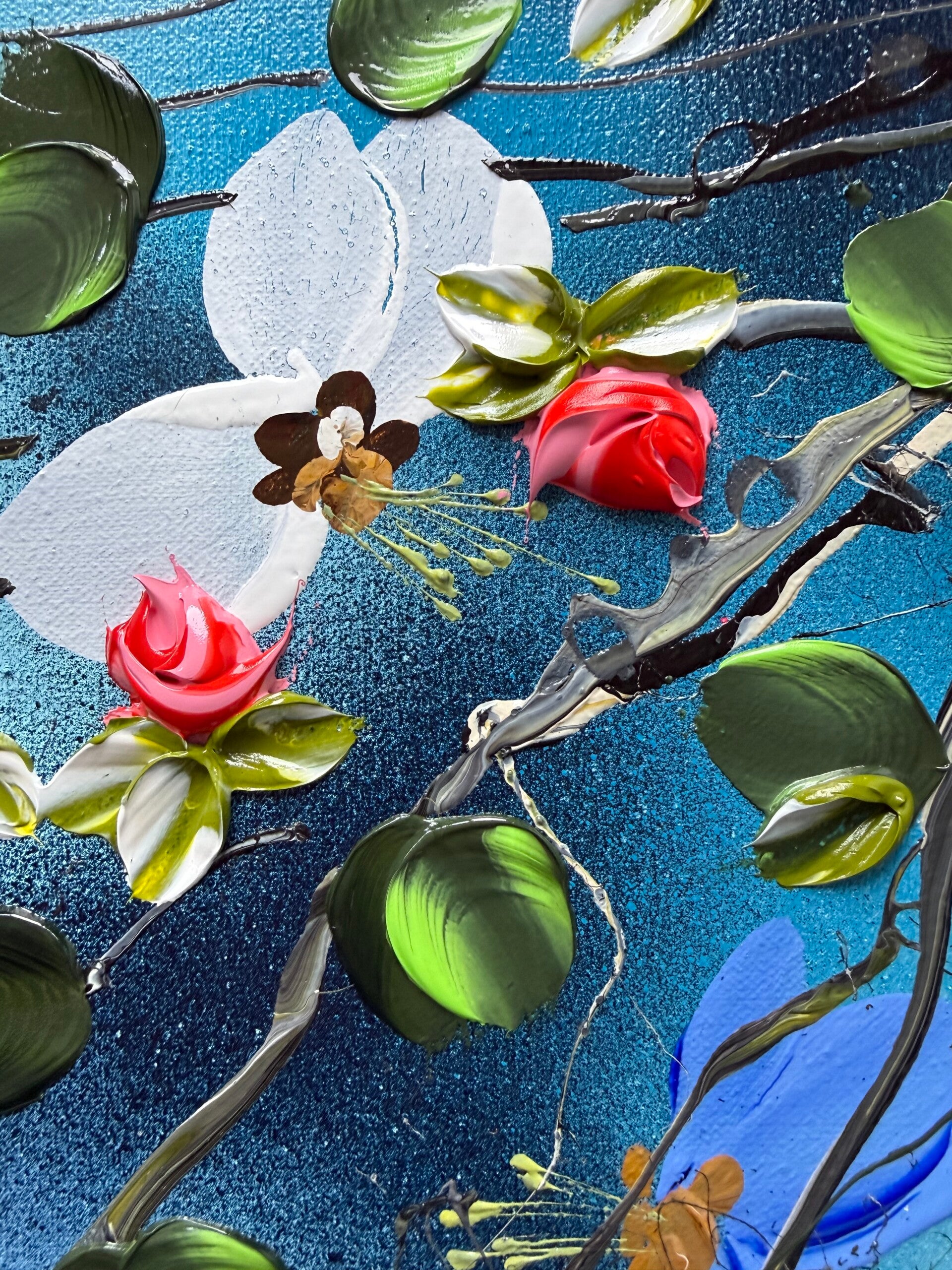 • Impasto blossoms created with a palette knife