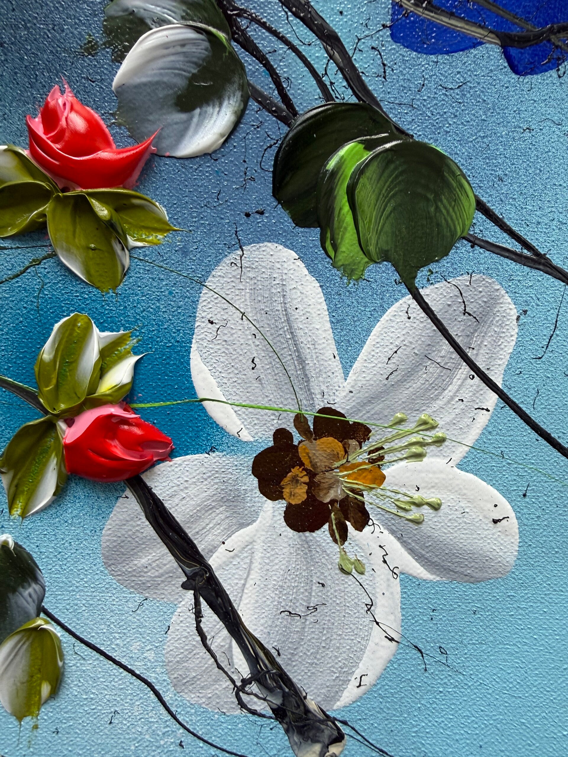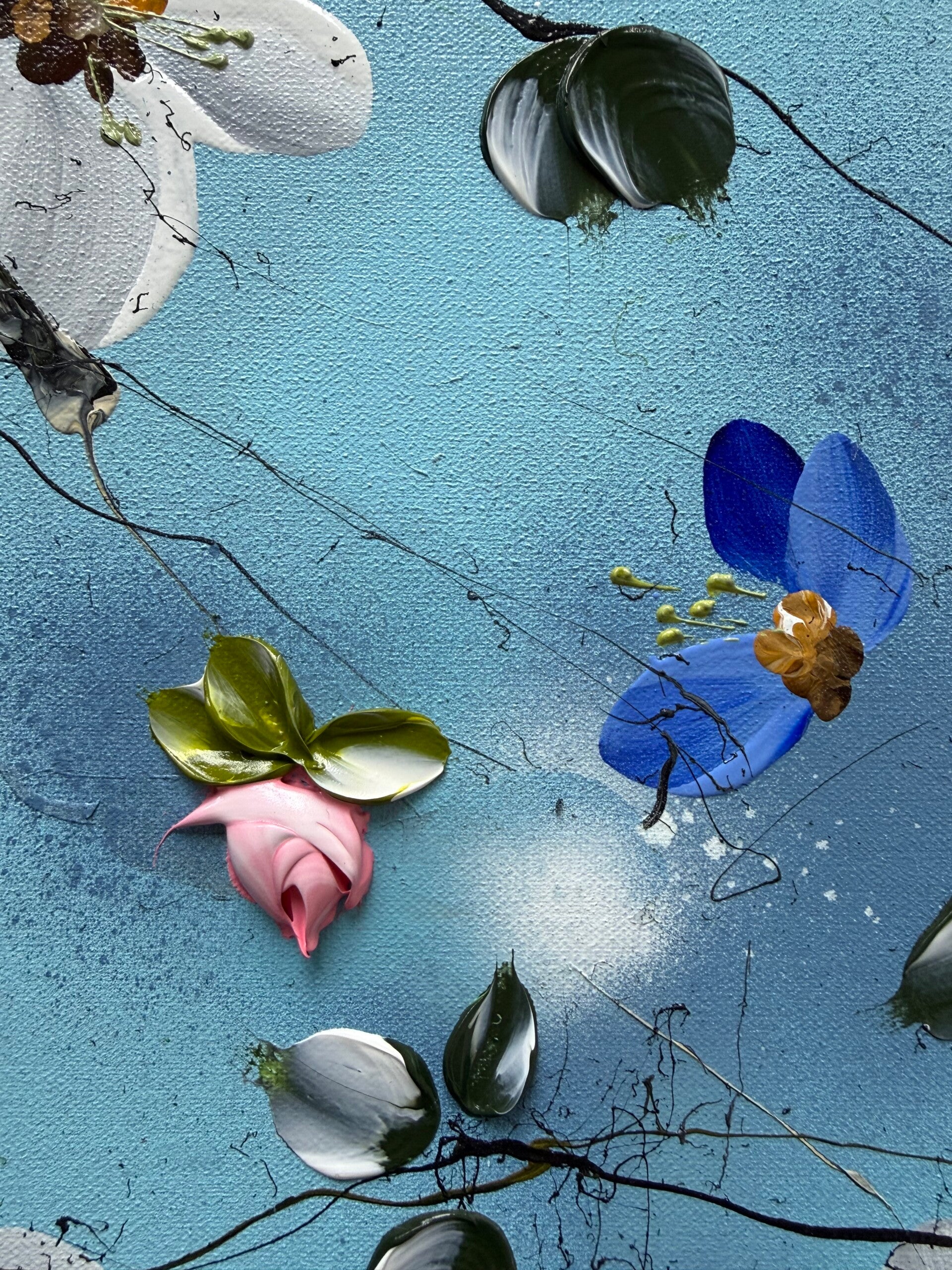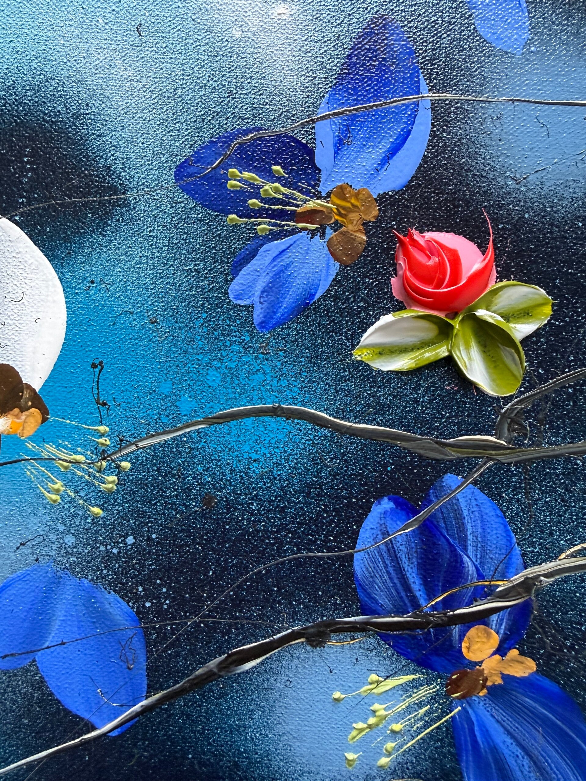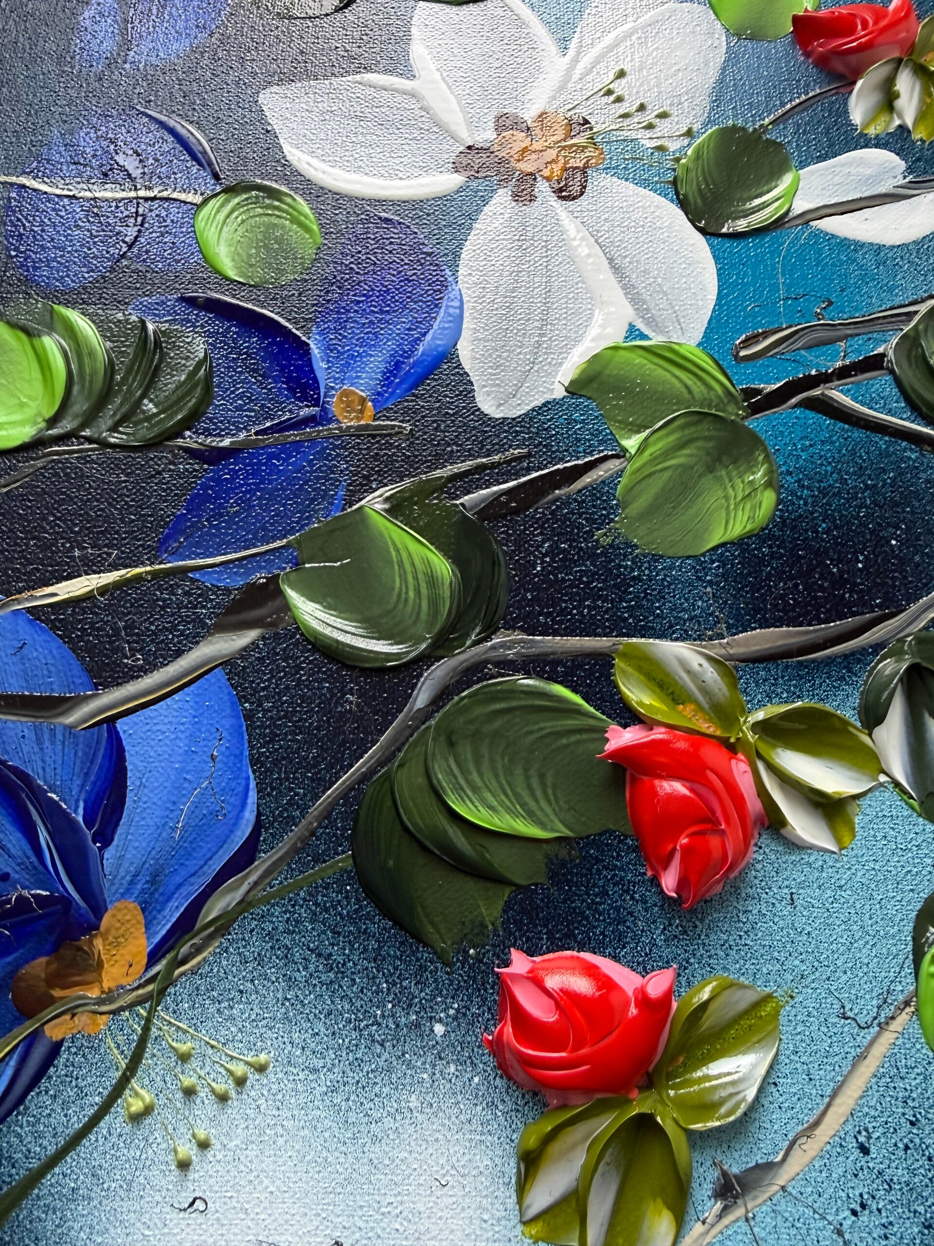 • Impasto blossoms created with a palette knife