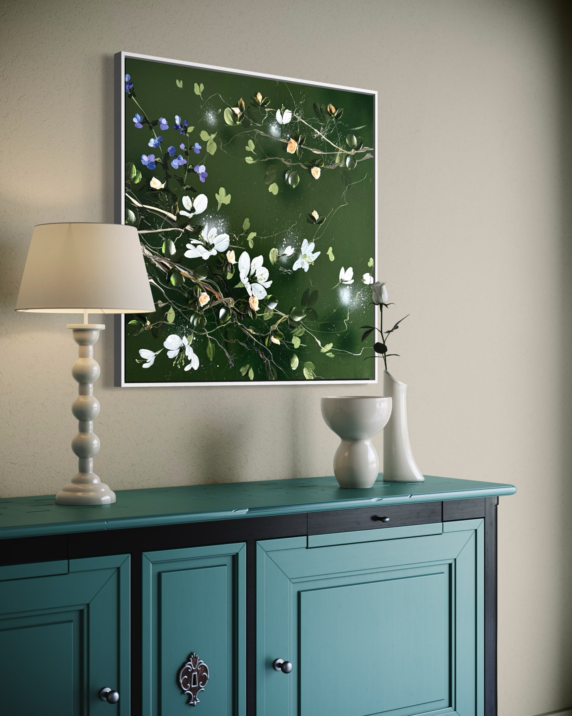 The work can be displayed on its own or combined with the other paintings from the Quiet Branches series, creating a calm and cohesive arrangement.