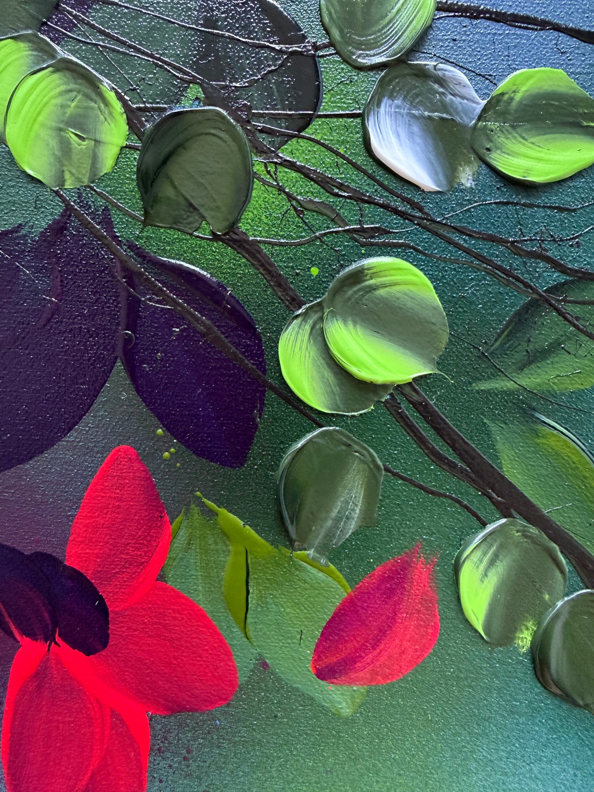 Fragments of a Garden is a three-part composition consisting of three individual paintings that together form a unified visual narrative.