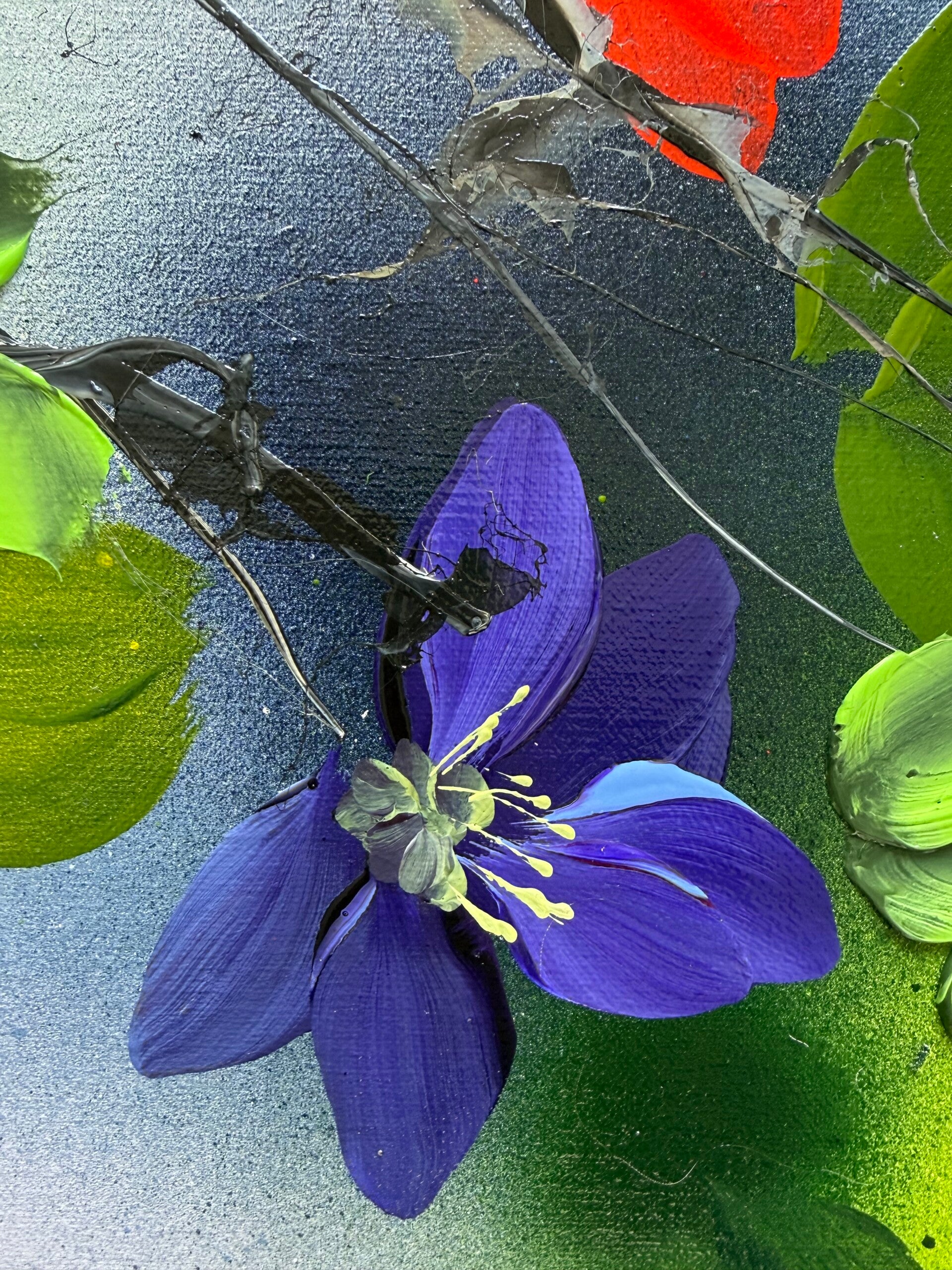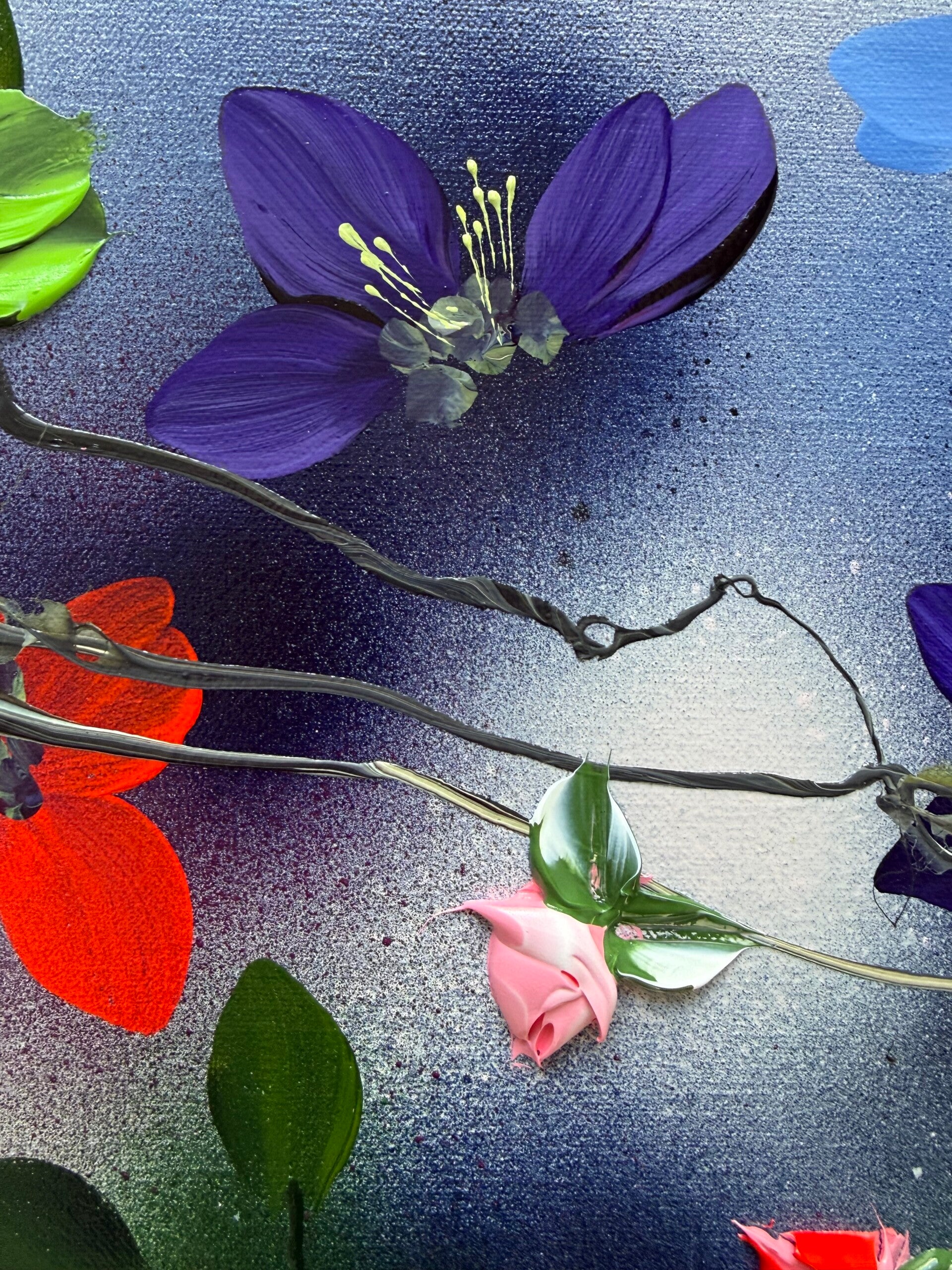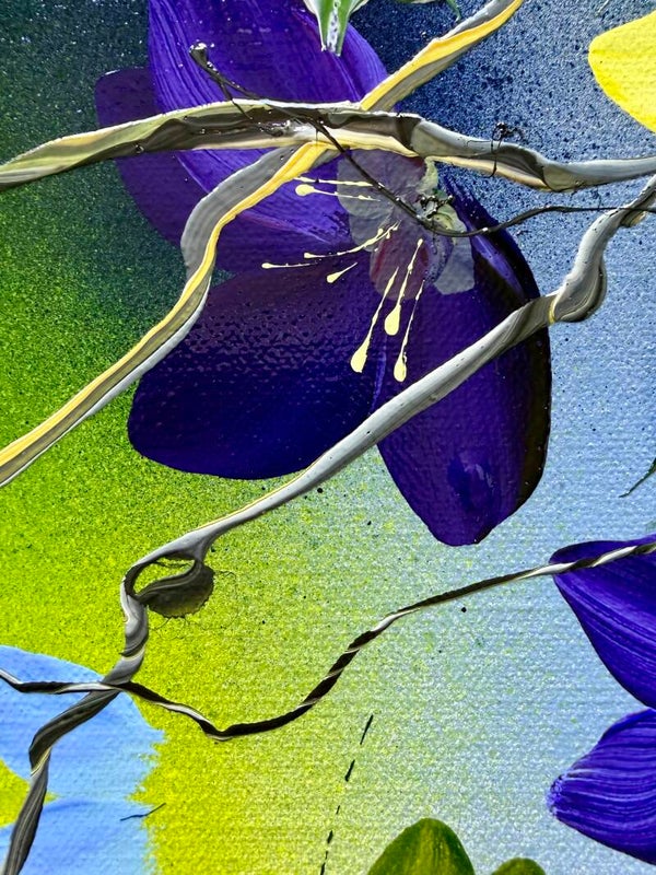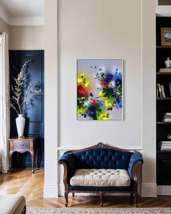Colorful floral painting on linen "Where Colours Meet", 60 × 80 × 2 cm (23.6 × 31.5 × 0.8 in)