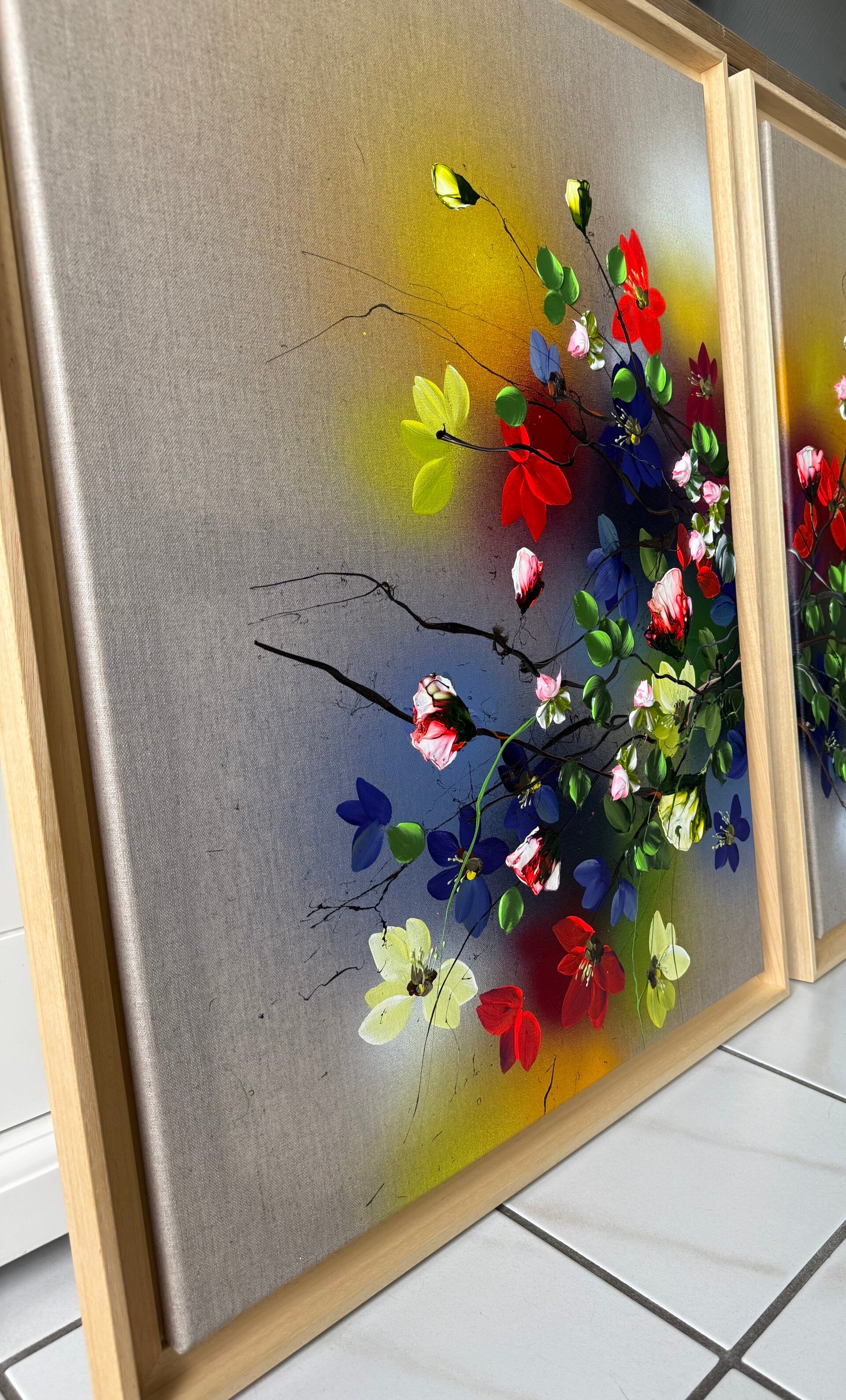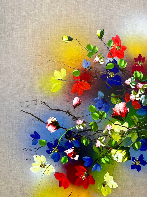 Framed floral artwork "Light Field I" 67 × 87 × 4 cm (26.4 × 34.3 × 1.6 in)