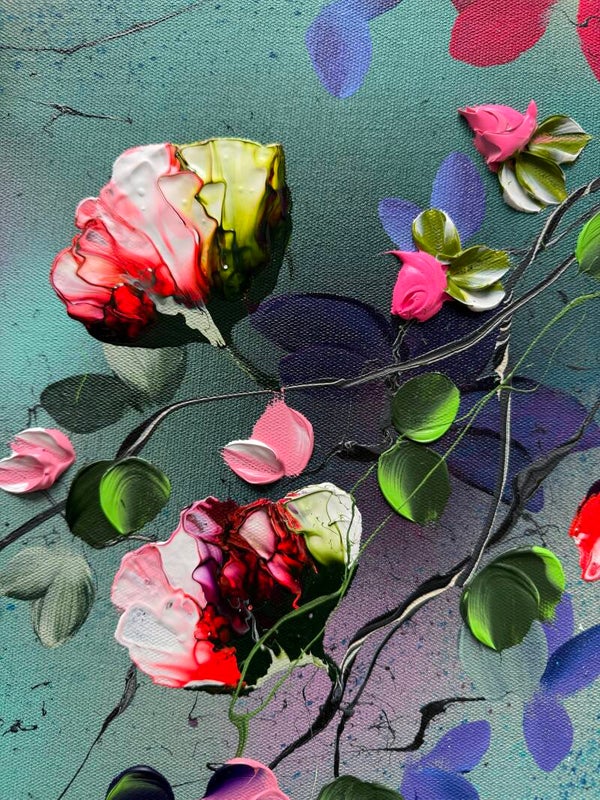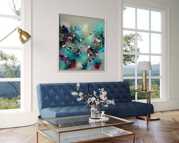 Large Floral Painting on Linen Canvas "Wabi-Sabi Fragments" - 96 × 96 × 2 cm (37.8 × 37.8 × 0.8 in)