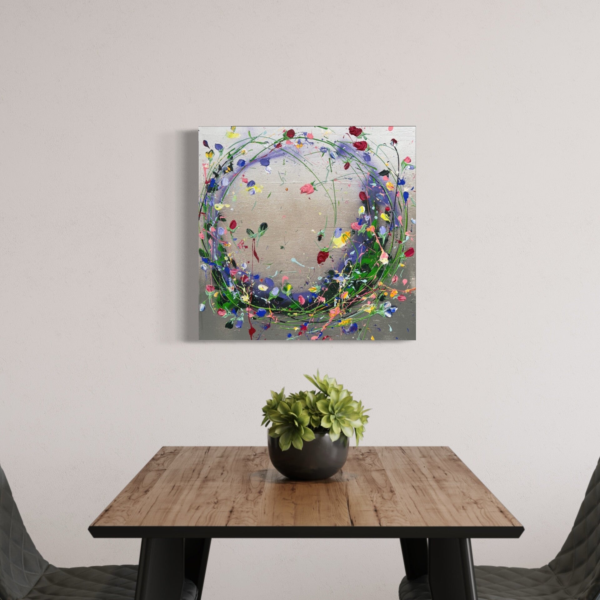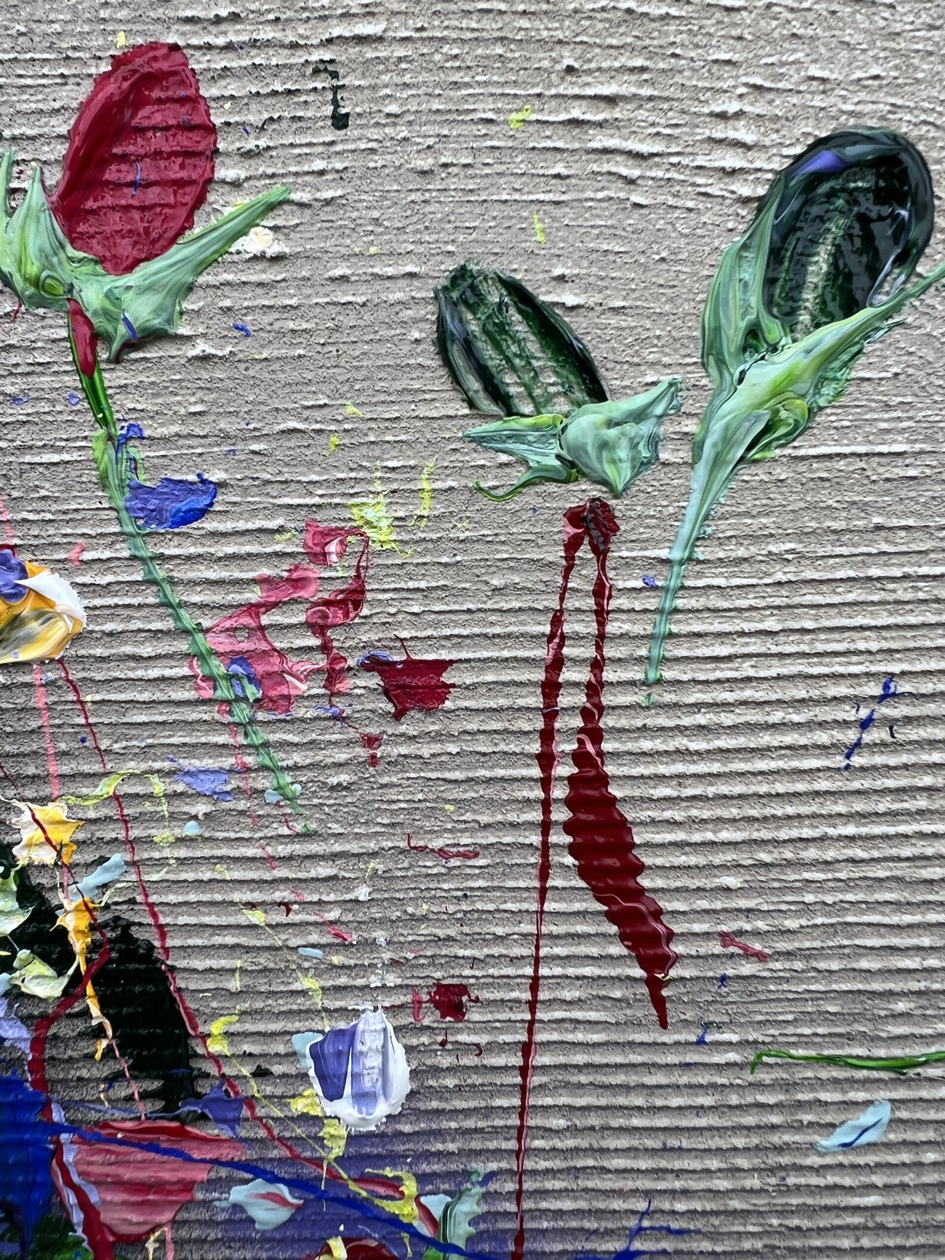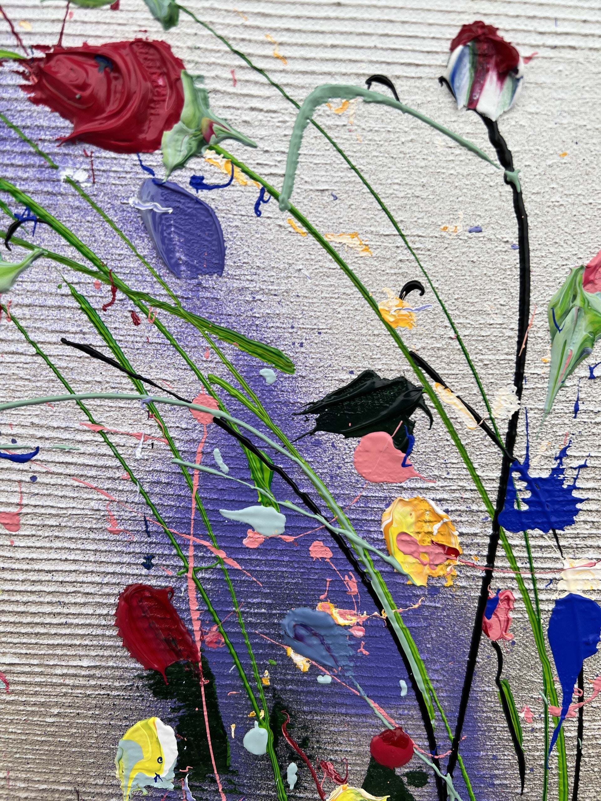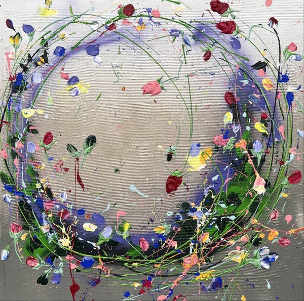 Square acrylic painting with flowers "Fragment Of The Moment II", original, abstract