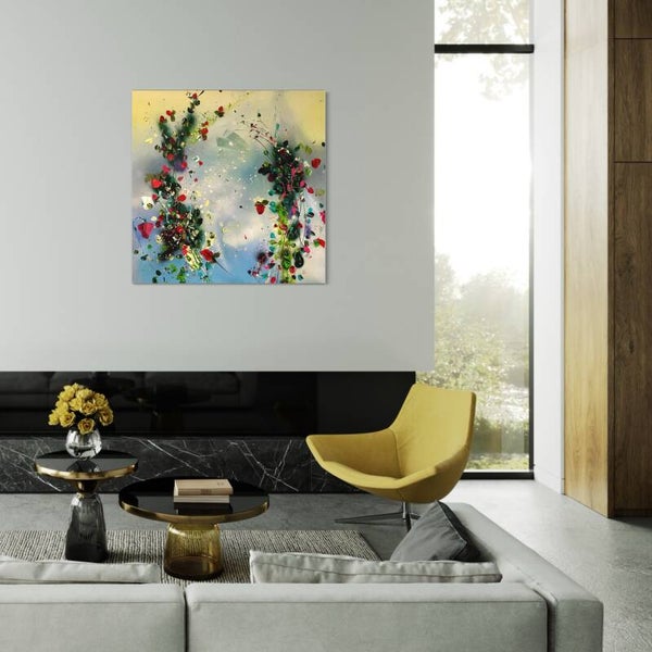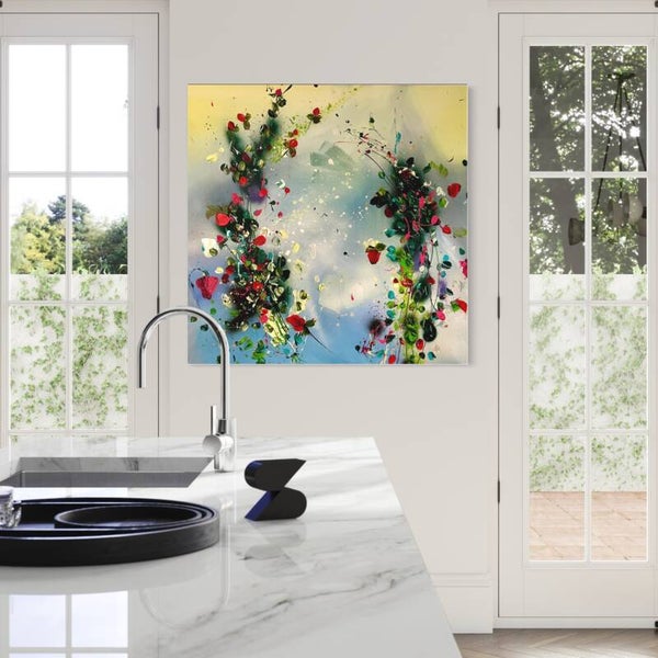 Abstract textured acrylic painting on canvas 100x100x2cm. Mixed Media on gallery wrapped canvas. The work is ready to hang. No framing required. The sides of the work are painted.