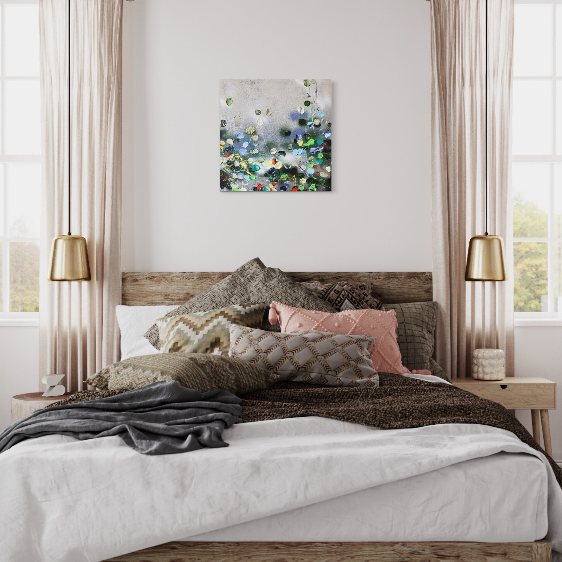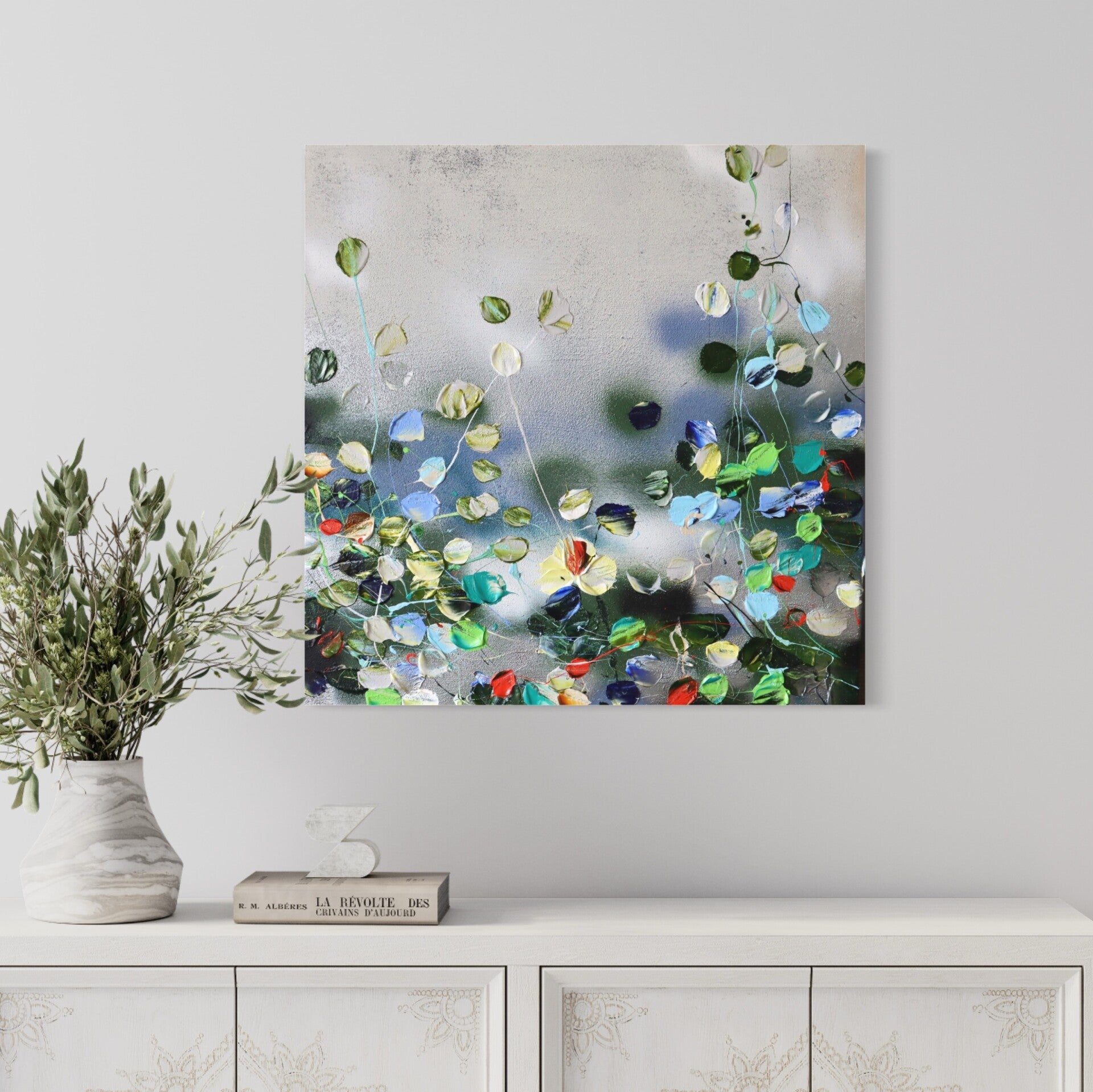 Abstract textured acrylic painting on canvas 50x50x2cm. Mixed Media on gallery wrapped canvas. The work is ready to hang, no framing required. The sides of the work are painted.